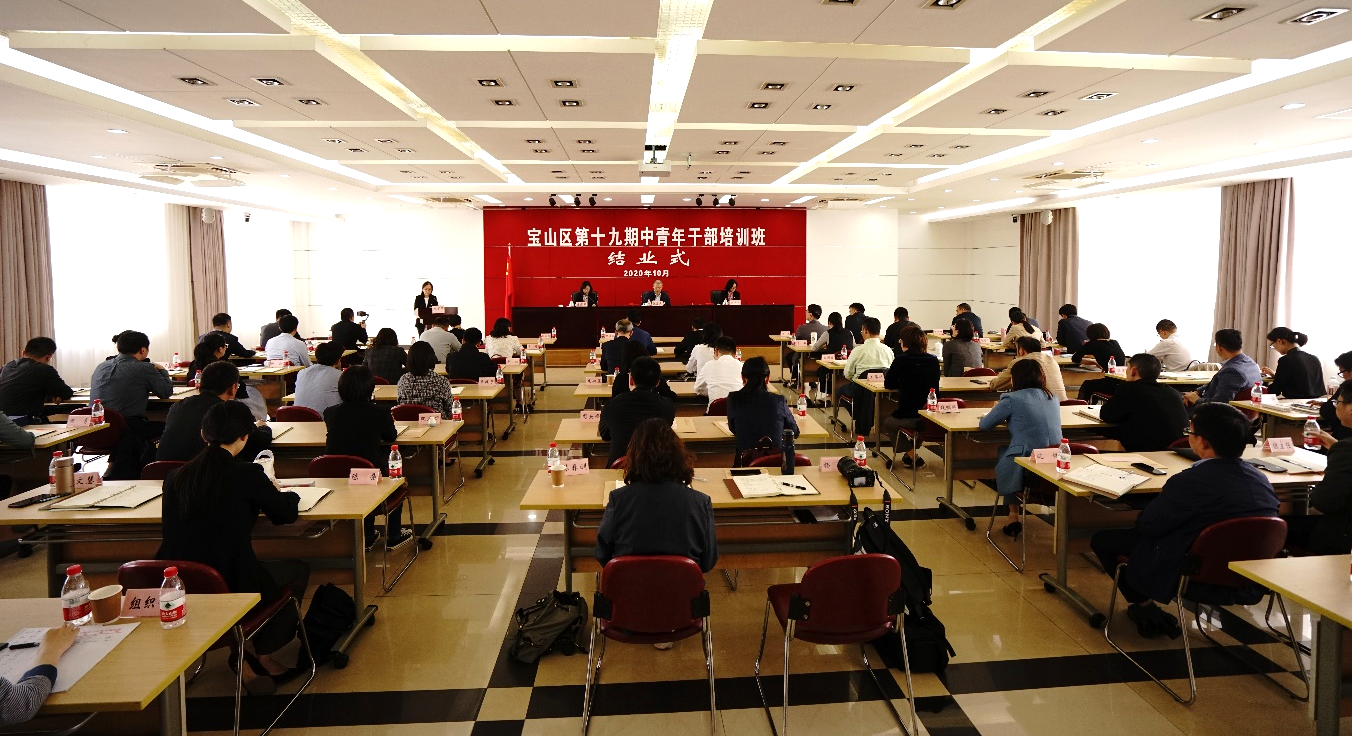 结业式上播放了中青班学习实践纪实专题片《我们在宝山奋斗》。班长曾文慧代表班委作了培训汇报。潘晓磊、袁园和朱莹等3名学员代表作了交流发言。