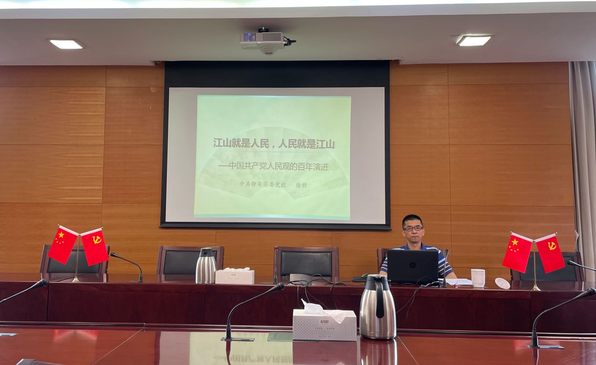 本网讯 6月28日下午,静安区委党校党支部书记徐胜以“江山就是人民,人民就是江山——中国共产党人民观的百年演进”为题为全体党员上专题党课。