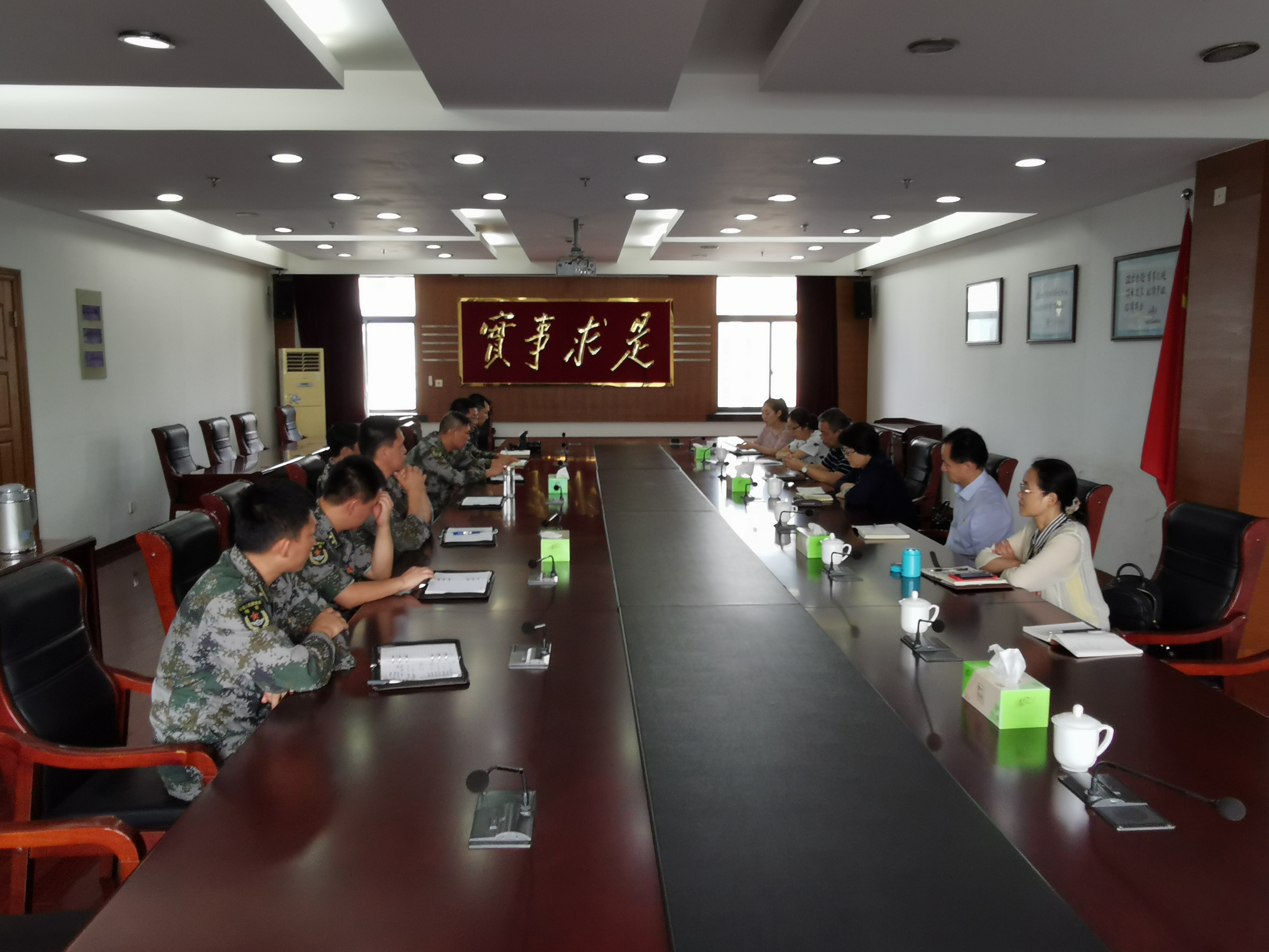 在五团领导的陪同下,大家参观了五团团史馆“长城园”,认真聆听讲解,仔细端详每一件展品,从重温五团建军史中,汲取历史力量。参观后,双方就在“四史”学习中的体会感悟开展了互动交流。王秋萍对下一步继续做好双拥共建工作提出设想与希望。双方领导表示这次活动非常有意义,不仅增进了双方的共建情谊,也是区委党校“四史”进军营的良好开端。