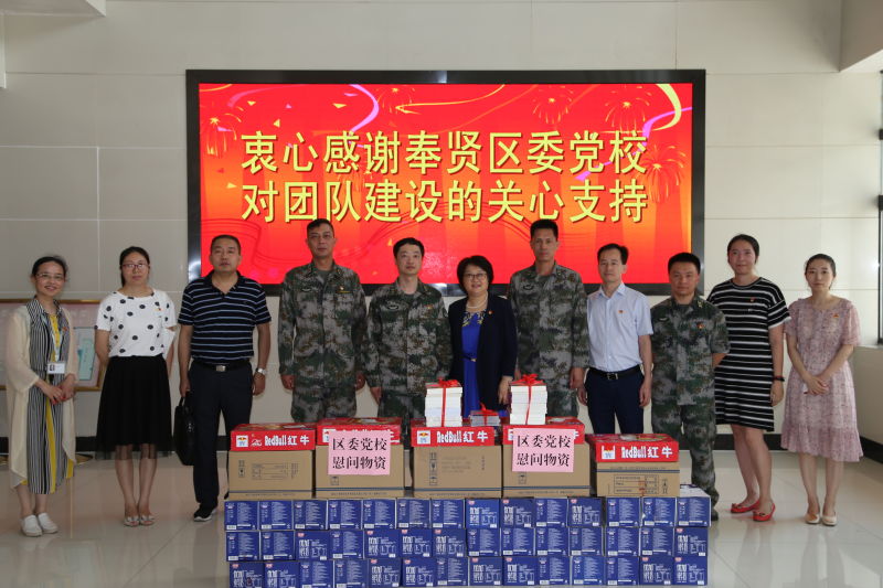 本网讯 7月23日上午,奉贤区委党校领导班子、支部班子成员、党员教师代表赴高炮预备役五团开展“四史”进军营活动。常务副校长王秋萍、副校长、支部书记岑文忠代表区委党校向五团赠送了“四史”相关书籍、课程菜单、微课视频光盘等精神食粮,并向五团全体官兵致以节日的祝愿。