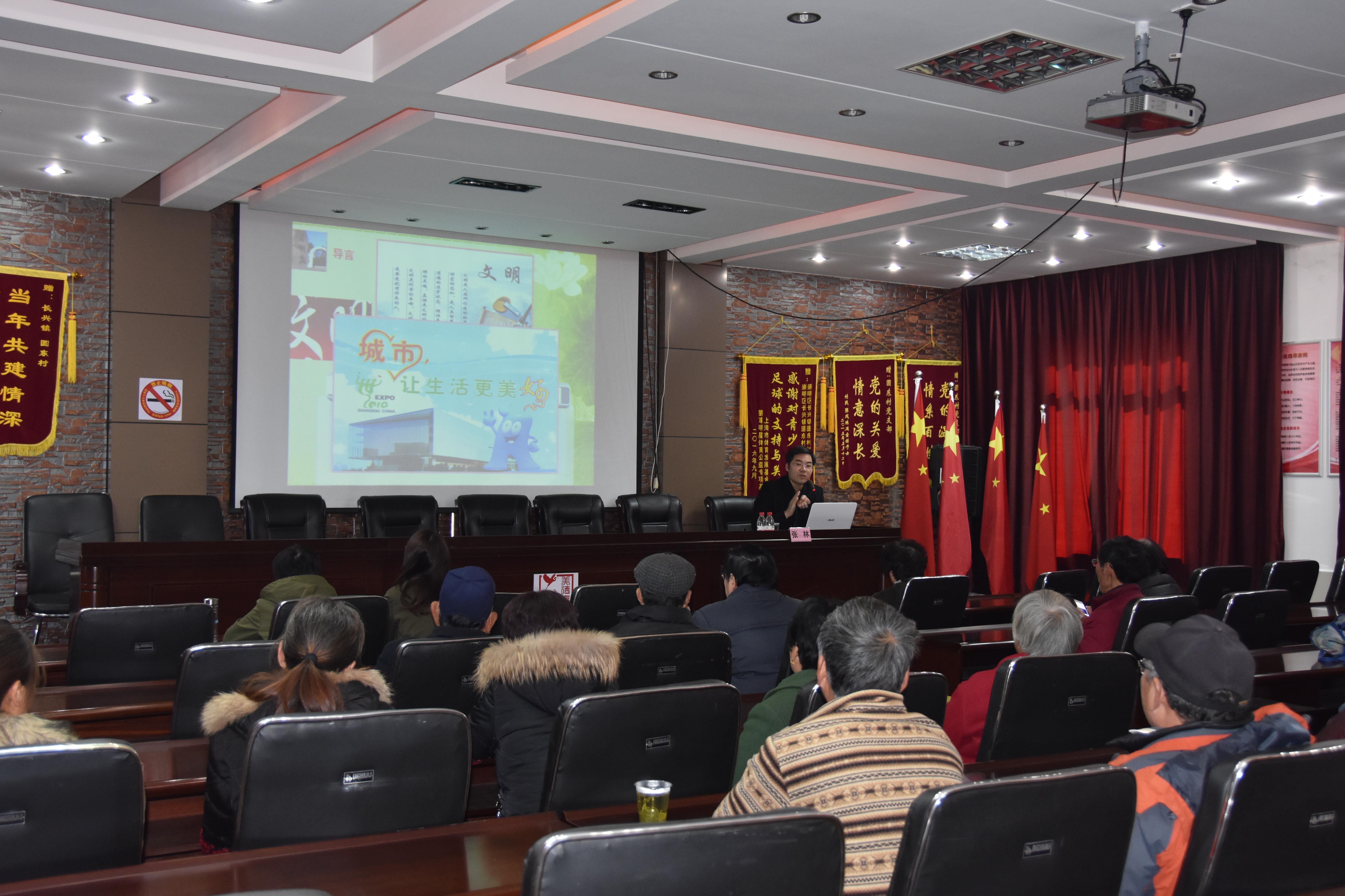 首场宣讲会上,教研室主任张林老师紧扣当前创城中心工作,结合3月份创城测评实际,以《同创全国文明城区,共建世界级生态岛》为题,为圆东村、鼎丰村两村党员群众解读了全国文明城区是什么、为什么创建、面临什么挑战以及重点做什么等创城“应知”和创城“应会”,激发大家主动参与文明城区创建系列活动的热情和行动。