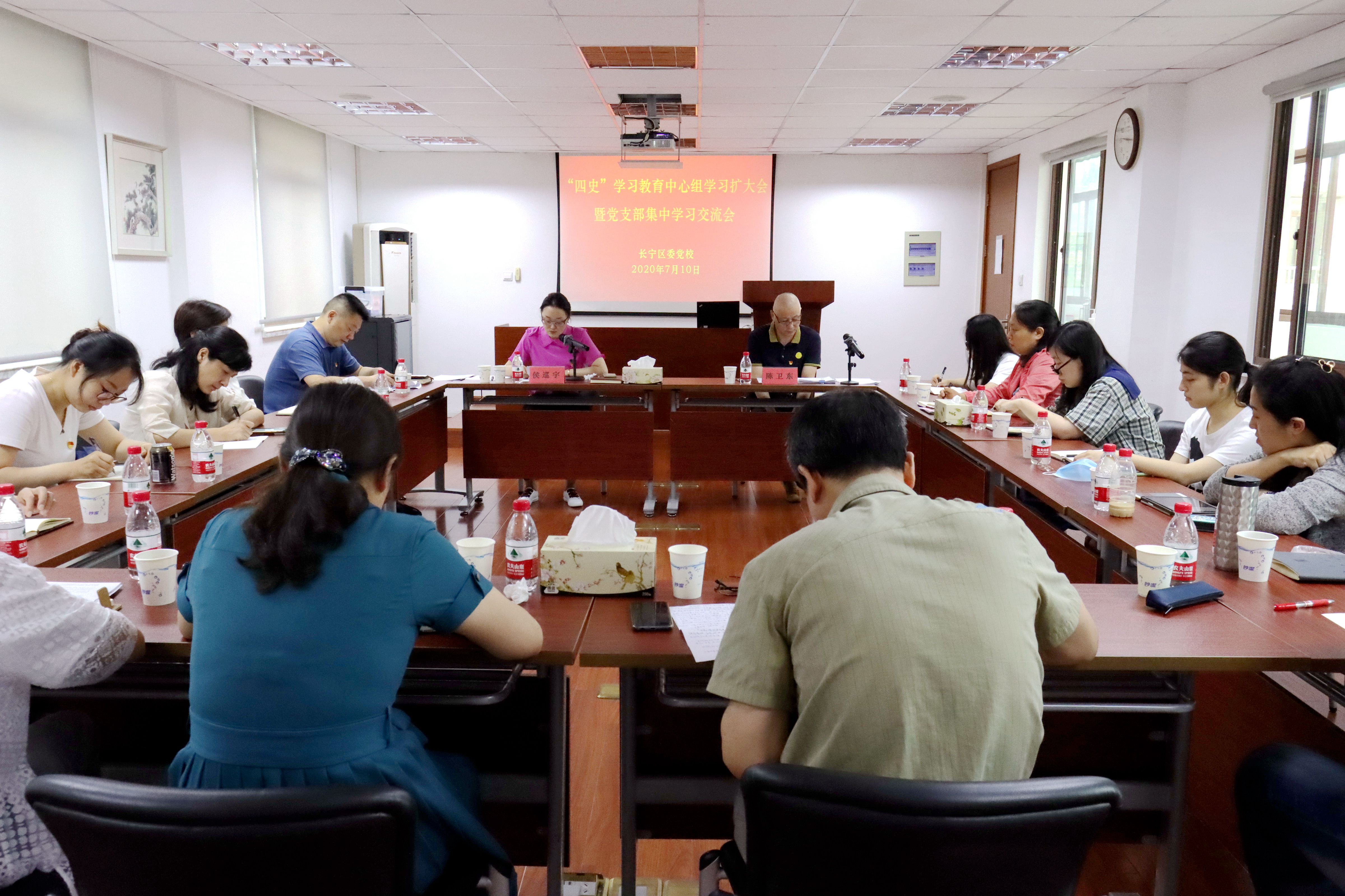本网讯 7月10日上午,长宁区委党校召开“四史”学习教育中心组学习扩大会暨党支部集中学习交流会,组织学习习近平总书记给复旦大学《共产党宣言》展示馆党员志愿服务队全体队员的回信,传达学习十一届市委九次全会精神和十届区委十次全会精神。