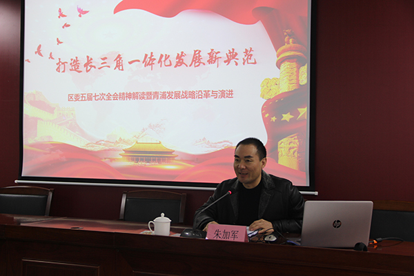 本网讯 1月15日下午,青浦区委党校举办2019年首场“让学习点亮人生”系列讲座,邀请区委研究室主任朱加军作“打造长三角一体化发展新典范”专题报告,为全体教职员工解读五届区委七次全会精神。
