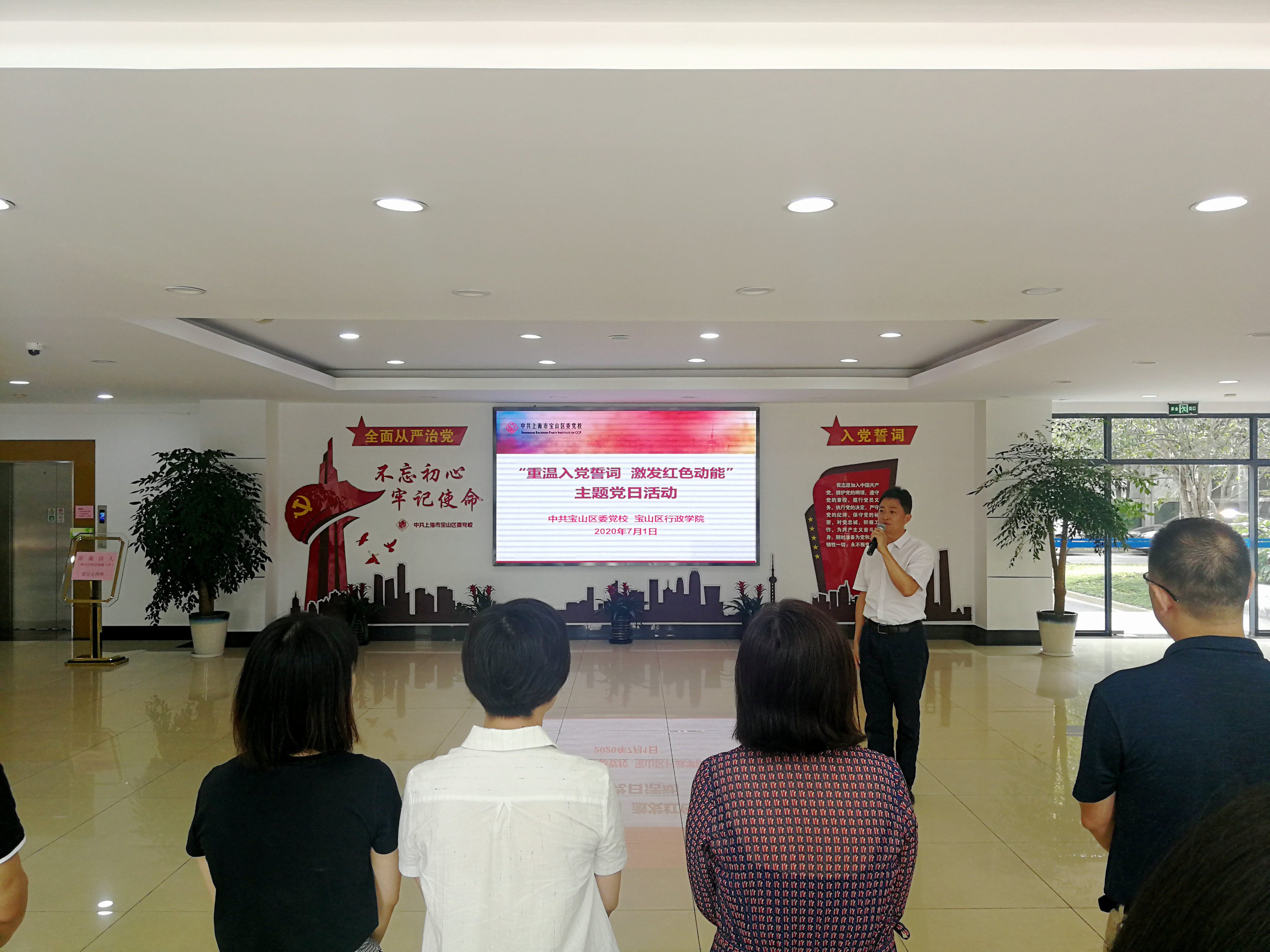 本网讯 为庆祝中国共产党成立99周年,深入推进“四史”学习教育,7月1日上午,宝山区委党校开展“重温入党誓词,激发红色动能”主题党日活动,全体党员参加。
