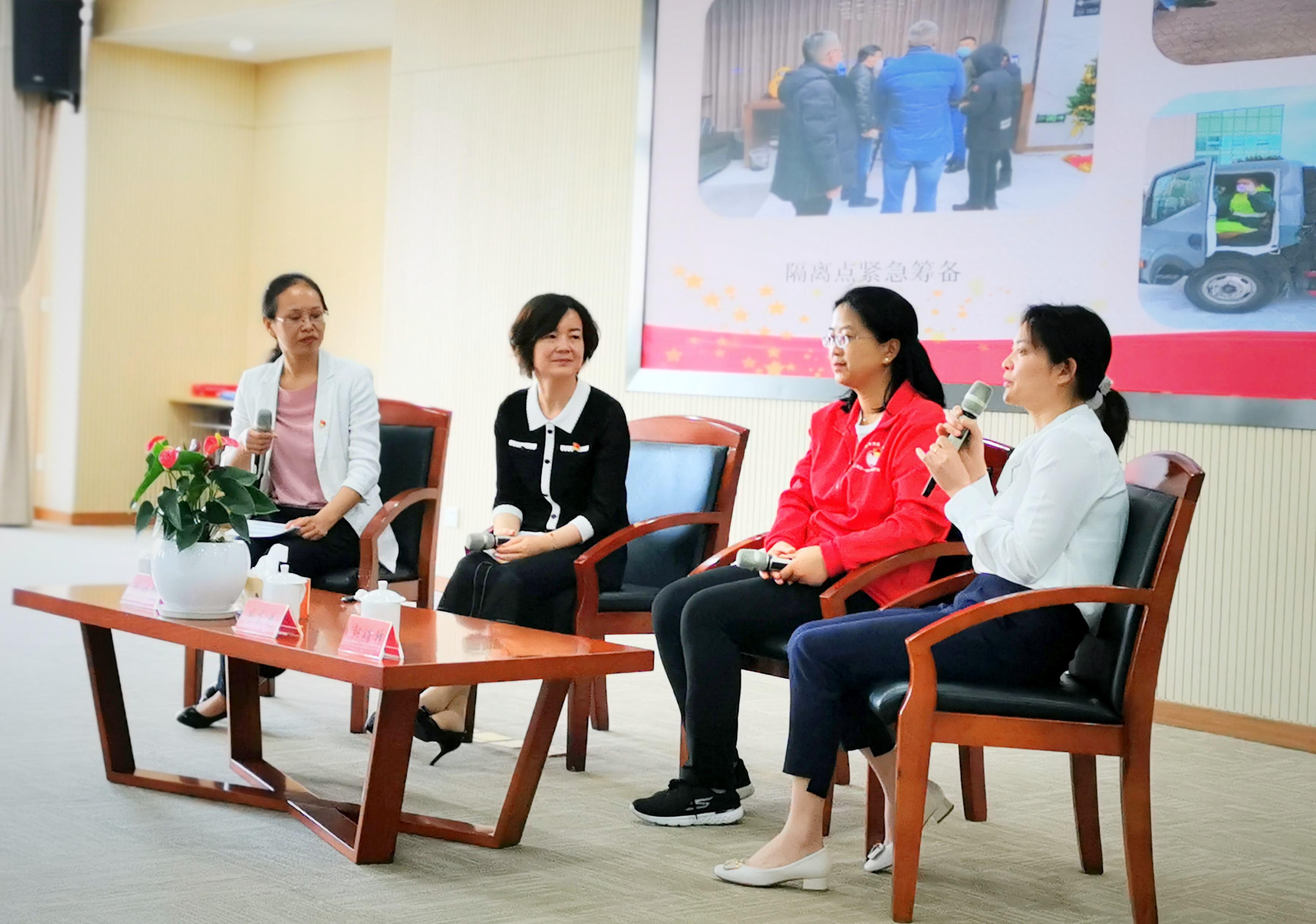 活动邀请奉贤区医疗卫生系统人员来到党校,讲述医疗卫生系统党组织在此次疫情防控中所做的贡献,分享医务工作者积极响应党组织召唤,投身抗击疫情的先进事迹和感人瞬间。区卫生健康工作党委副书记蔡培红,区中医医院呼吸科主任、内儿科党支部书记周东花,南桥镇社区卫生服务中心贝港分中心支部书记郭娟锋,区古华医院党支部书记钱群作为访谈嘉宾出席,党校全体教职工参加。