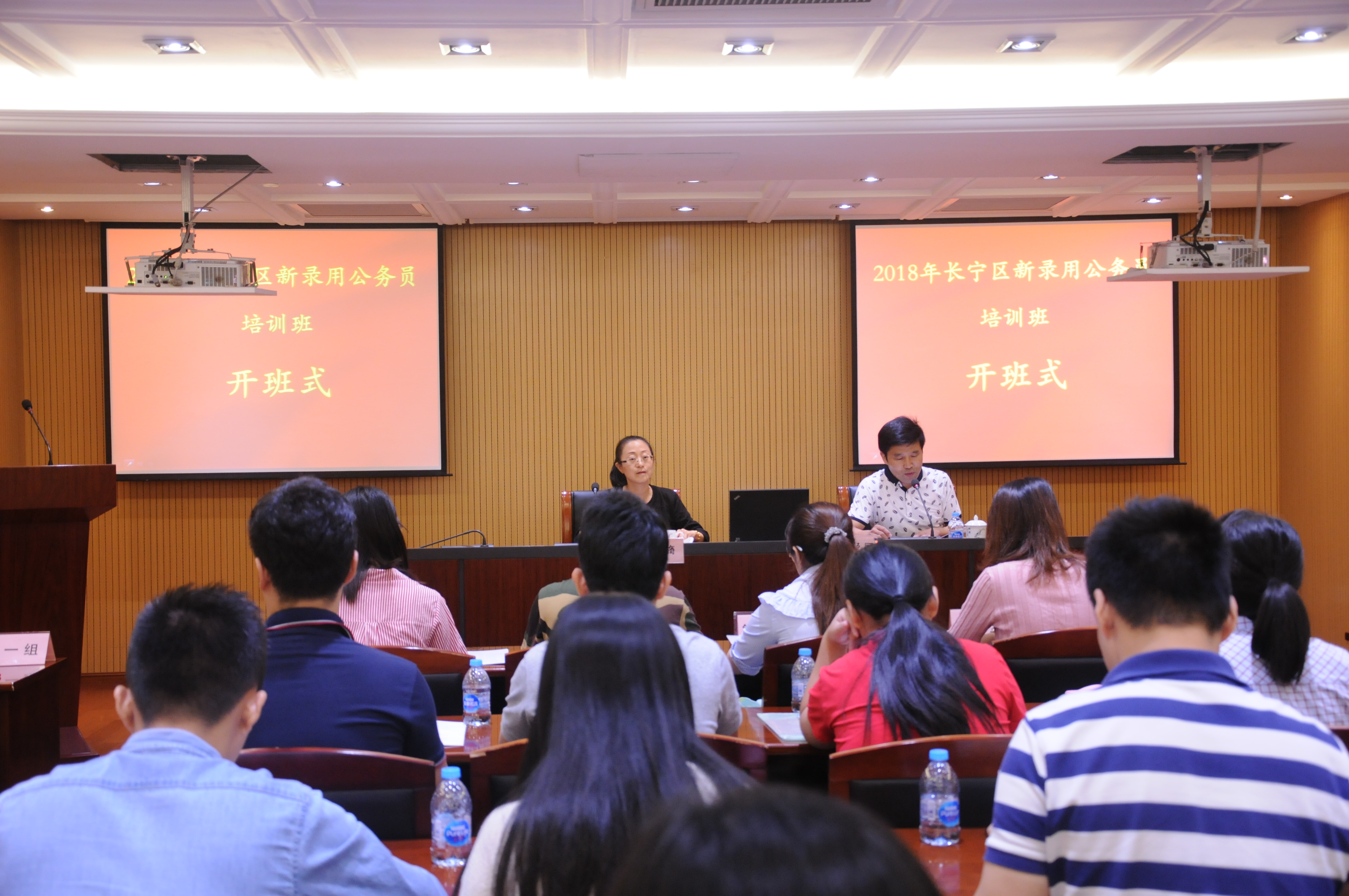本网讯 9月11日,2018年长宁区新录用公务员培训班开班,区人社局副局长、公务员局局长陆旖作开班动员。89名2018年度新录用公务员(含参公人员)参加了培训。
