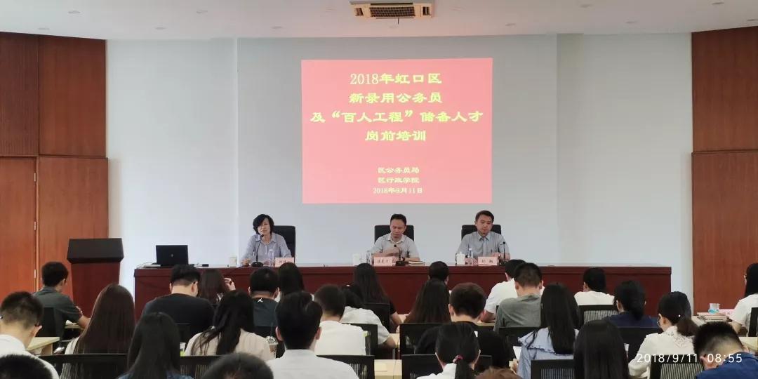本网讯 9月11日上午,2018年虹口区新录用公务员及“百人工程”储备人才岗前培训班在虹口区委党校开班。区人社局、区公务员局副局长环翔作开班动员,区委党校常务副校长温美平致欢迎辞。90名新录用公务员及“百人工程”储备人才参加培训。