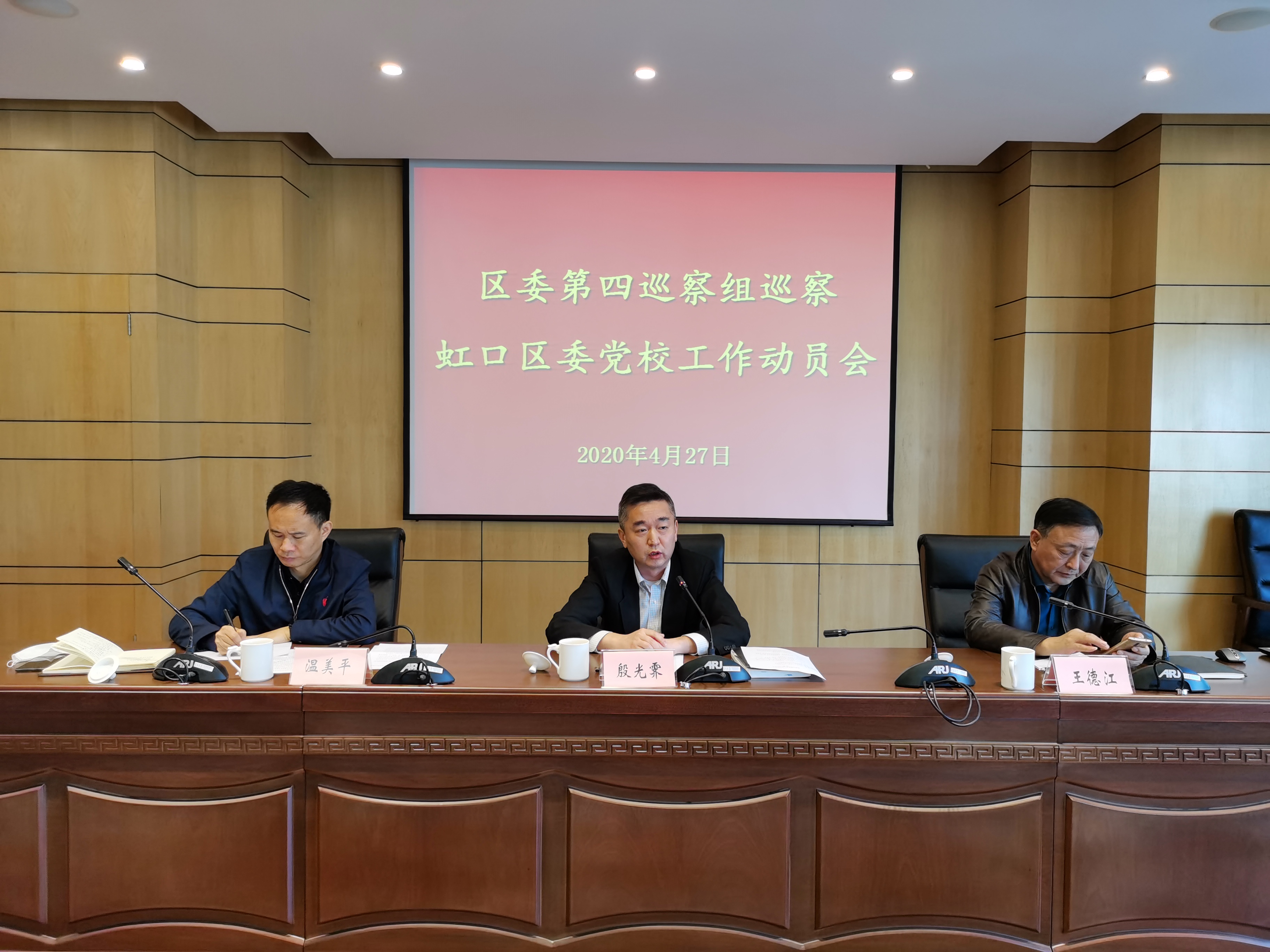 本网讯 根据虹口区委统一部署,区委第四巡察组近日进驻区委党校开展巡察工作。4月27日上午,区委第四巡察组巡察区委党校工作动员会召开。区委第四巡察组组长王德江就即将开展的巡察工作进行了动员。区委巡察工作领导小组成员殷光霁就做好本轮巡察工作提出要求。区委党校常务副校长温美平主持会议并就配合做好巡察工作作了表态发言。区委第四巡察组巡察专员张宁,副组长朱卓青、戴玮霞及巡察组全体成员,区委党校领导班子成员、有关负责同志出席会议,区纪委监委监督检查室、派驻纪检监察组成员有关同志列席会议。