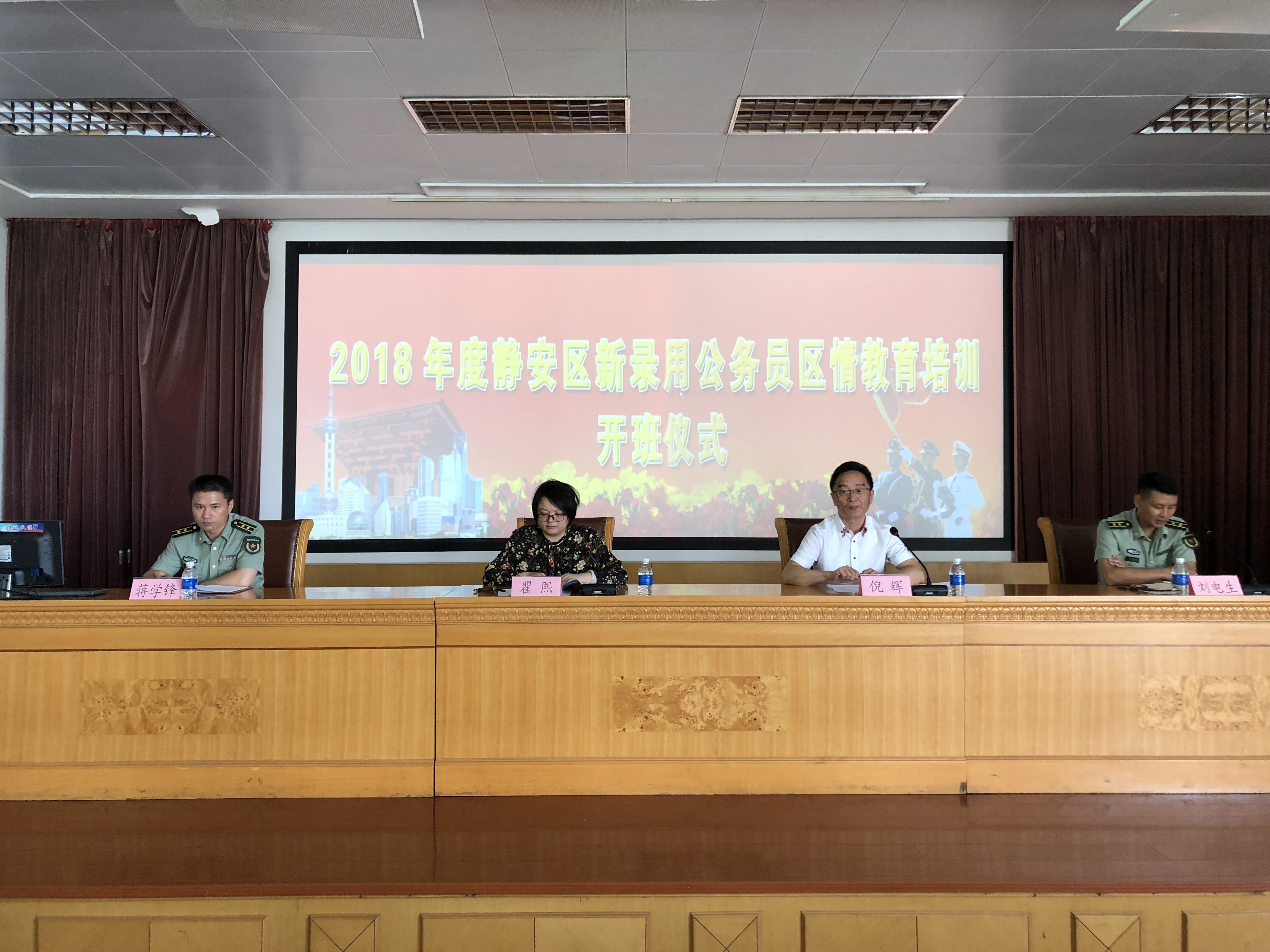 本网讯 8月30日上午,2018年度静安区新录用公务员区情教育培训开班仪式在上海警备区综合训练队举行。仪式由区行政学院副院长倪辉主持,区人社局副局长、公务员局副局长瞿熙作开班动员,上海警备区综合训练队队长蒋学锋、教导员刘电生出席仪式。来自区各单位的104名新录用公务员参加了此次开班仪式。