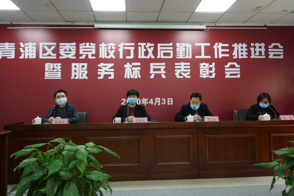 本网讯 4月3日下午,青浦区委党校召开行政后勤工作推进会暨服务标兵表彰会。常务副校长陈菊英出席,副校长武志华主持,行政后勤工作人员以及物业代表参加会议。