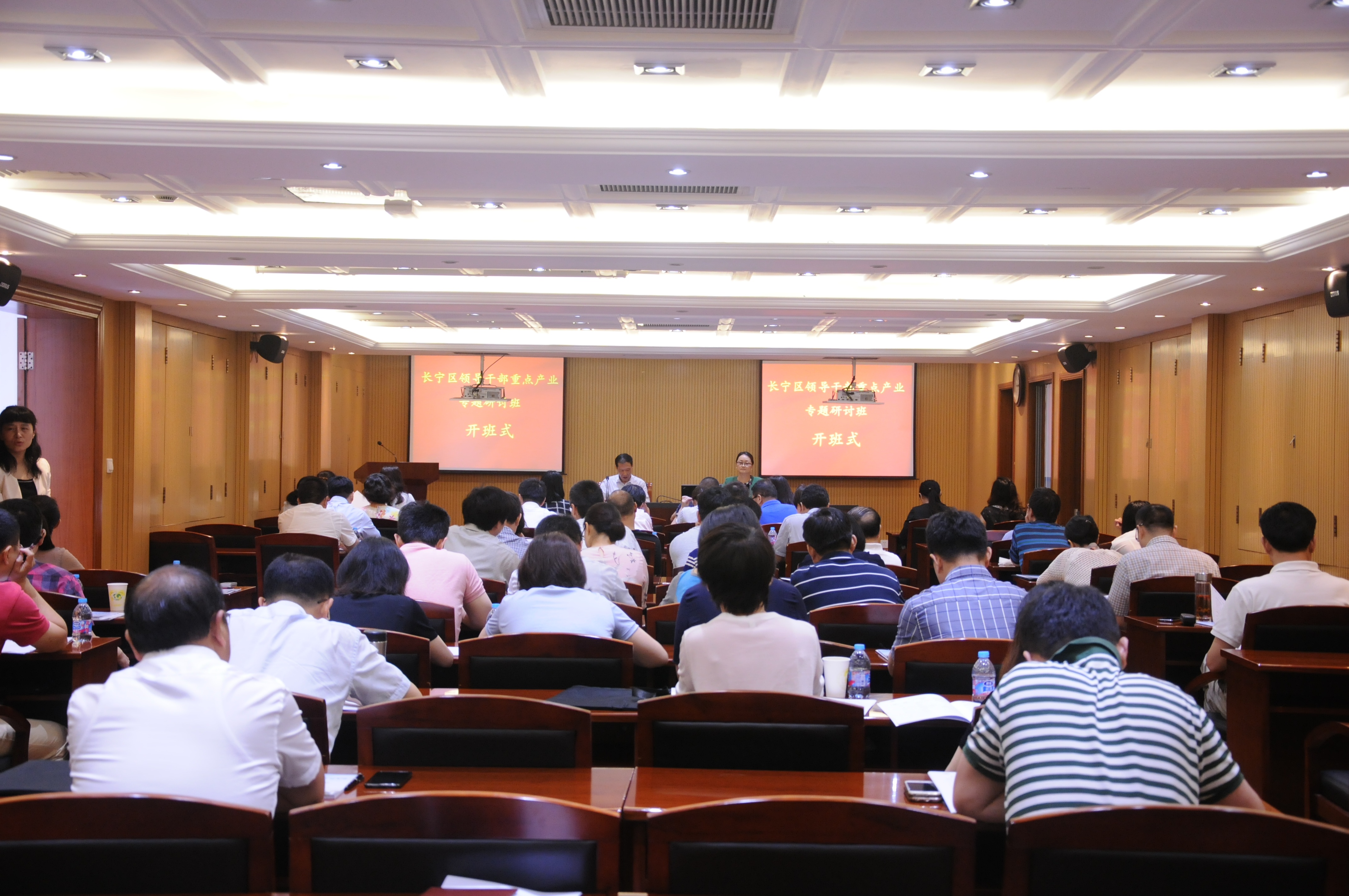本网讯 7月5日,长宁区领导干部重点产业专题研讨班开班,本次培训班由长宁区委组织部、区人社局、区行政学院、区商务委联合举办。区副巡视员邱放作开班动员,区行政学院常务副院长侯巡宇主持。来自全区“互联网+”生活性服务业、时尚创意产业相关单位、区属国有企业的分管领导和科室负责人74人参加了培训,培训为期2天。