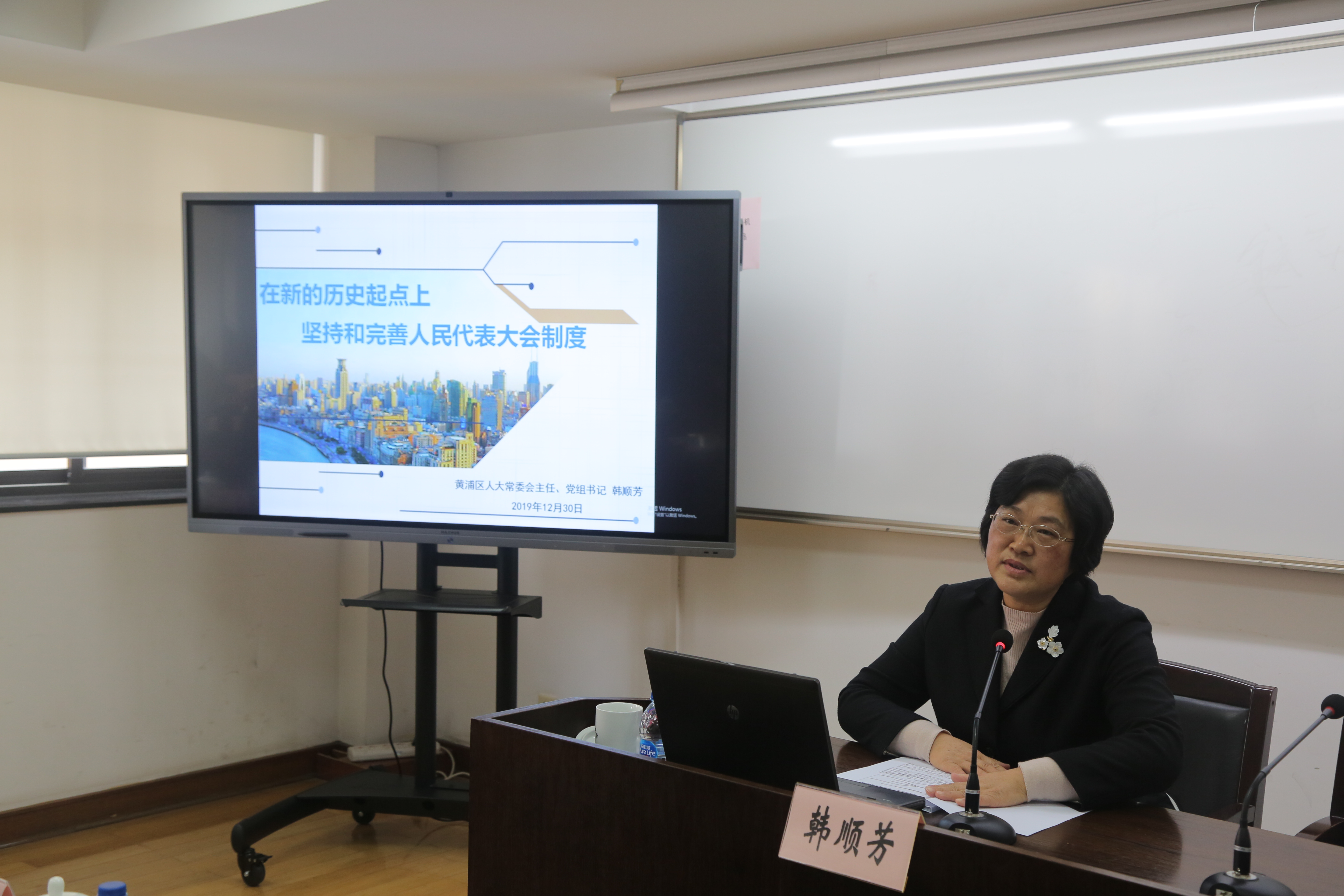 本网讯 2019年12月30日下午,黄浦区人大常委会主任韩顺芳到区委党校(行政学院),为2019年第二期处级干部进修班学员作题为“在新的历史起点上 坚持和完善人民代表大会制度”的专题报告。