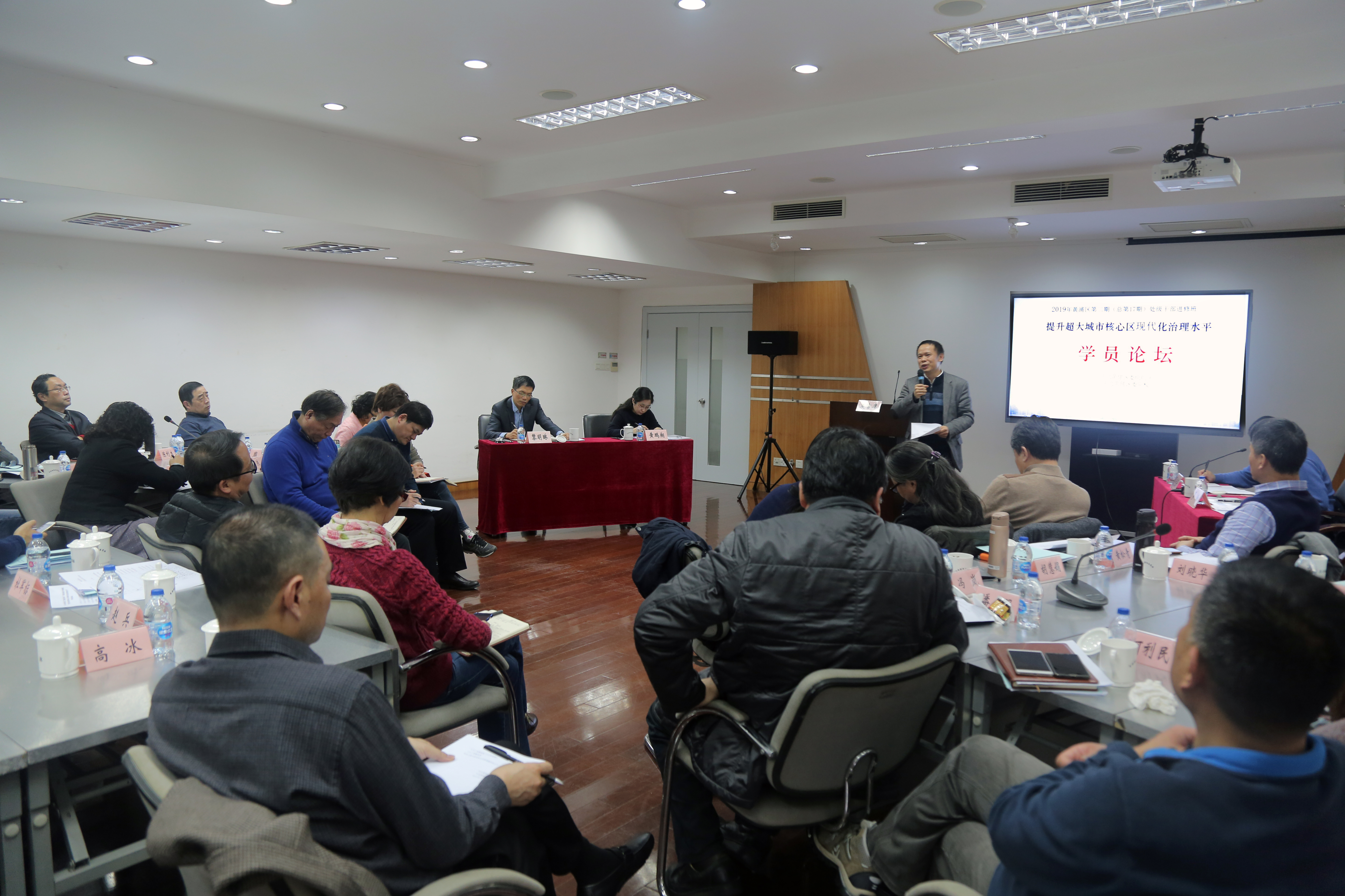 本网讯 12月26日上午,黄浦区委党校围绕“提升超大城市核心区现代化治理水平”主题,举办了2019年第二期处级干部进修班学员论坛。论坛特邀市委党校公共管理教研部主任罗峰教授作点评,区委党校副校长夏光荣及处级班全体学员参加学员论坛。
