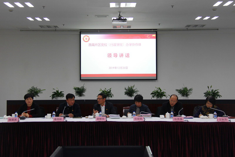 谢根华指出,2019年西南片区党校(行政学院)办学协作体工作成效明显,进一步提升了党校精神、加强了资源共建共享。他结合《中国共产党党校(行政学院)工作条例》和全国党校(行政学院)校(院)长会议精神,对下阶段协作体重点工作提出要求。一是发挥好协作体制度建设功能,深化“轮值+”模式,推进资源共享共用。二是发挥好协作体平台作用,加强各校合作,推动合作项目向高质量发展。三是学习领会好、贯彻落实好《中国共产党党校(行政学院)工作条例》精神,坚持党校姓党、从严治校、制度立校,促进协作体改革创新。