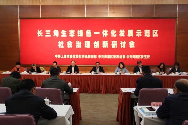 本网讯 11月27日下午,由上海市委党校社会学教研部、青浦区委政法委、青浦区委党校联合主办的“长三角生态绿色一体化发展示范区社会治理创新”研讨会在青浦区委党校举办。上海市委党校副校长谢根华,青浦区委副书记、区委党校校长杨小菁,青浦区委政法委书记赵明,吴江区委政法委书记徐晓枫,嘉善县委政法委书记陈天荣,上海市委党校社会学教研部副主任马立等出席。青浦区委党校常务副校长陈菊英主持。