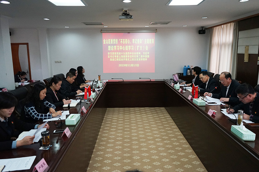 本网讯 11月13日,金山区委党校召开“不忘初心、牢记使命”主题教育专题学习研讨会,学习贯彻党的十九届四中全会精神、习近平总书记考察上海重要讲话和在第二届中国国际进口博览会开幕式上的主旨演讲精神。常务副校长孙秀强主持会议。校班子成员、调研员及全体党员参加会议。