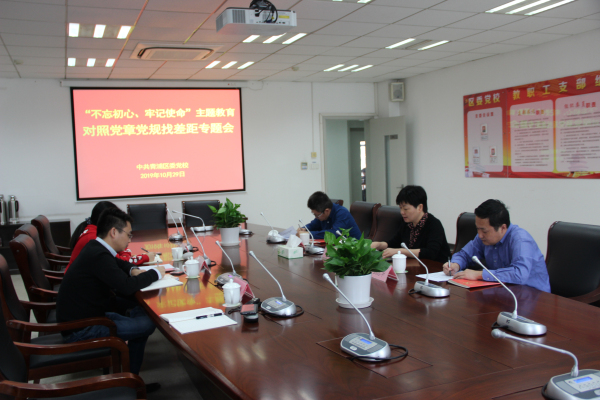 本网讯 10月29日,青浦区委党校召开“不忘初心、牢记使命”主题教育对照党章党规找差距专题会议。常务副校长陈菊英主持,副校长武志华、李继力等参加。