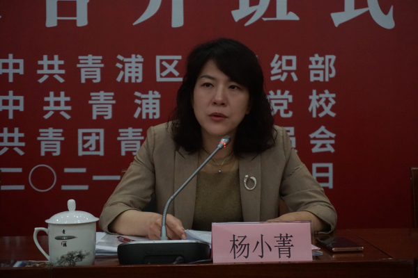 开班式上,杨小菁勉励学员,要切实在找准当前的发展方位中进一步增强奋勇前行的定力,立足“两个大局”“四个放在”的高度,准确把握党和国家事业发展的历史方位,准确把握青浦在国家战略和上海发展定位中面临的新使命新方向;要切实在不断提升能力素质中进一步增强“比学赶超”的底气,增强政治意识、突破思维定势、自觉融入全局、砥砺拼搏奋进、增强为民情怀、强化修身立德,着力以自身建设新成效为青浦开启全面现代化新征程贡献智慧力量、展现担当作为;要切实在增强培训实效中进一步展现“抢拼实善”的风采,要认真学习、讲究方法、严明纪律,尽快适应角色转变,确保培训取得实效。