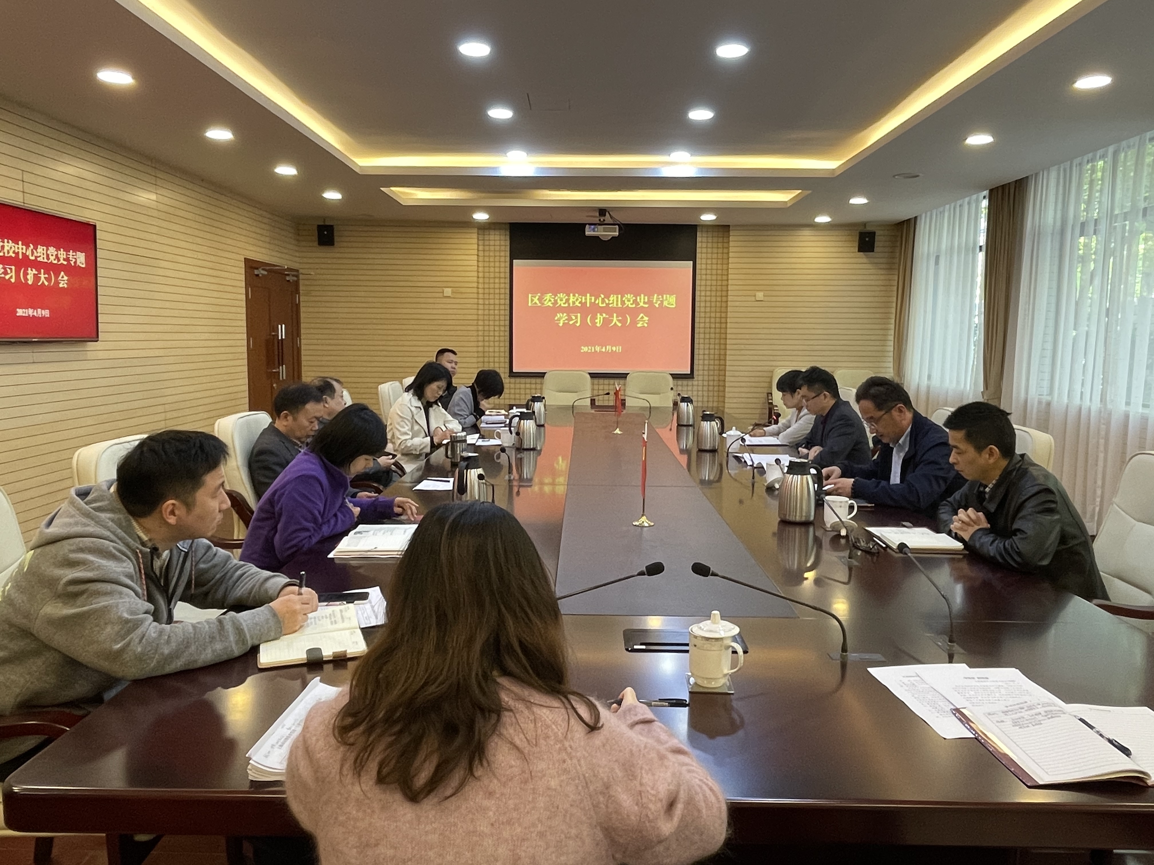 本网讯 4月9日下午,静安区委党校召开中心组党史专题学习(扩大)会,班子成员结合习近平总书记在党史学习教育动员大会、全国脱贫攻坚总结表彰大会、中央党校(国家行政学院)中青年干部培训班开班式上的重要讲话精神等内容,开展学习交流。静安区委党校常务副校长徐刚主持会议,并作重点交流发言。