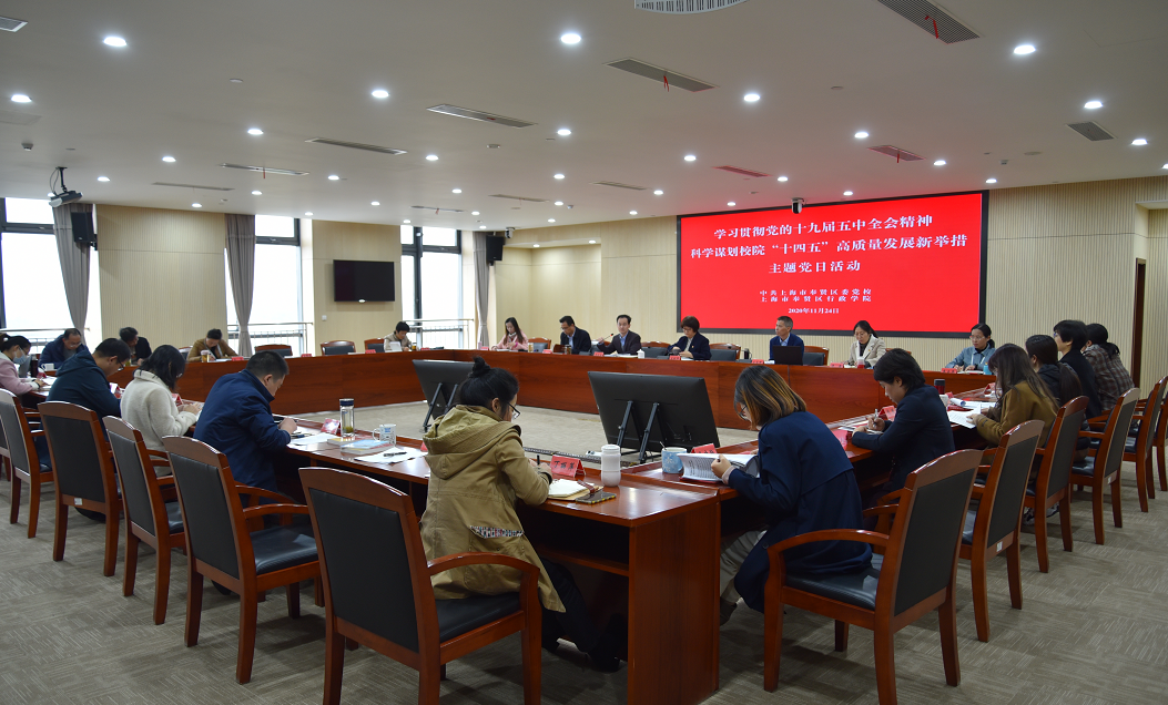 本网讯 11月24日,奉贤区委党校开展“学习贯彻党的十九届五中全会精神,科学谋划校院‘十四五’高质量发展新举措”主题党日活动,区委党校领导班子出席,活动由区委党校副校长岑文忠主持,全体教职员工参加。