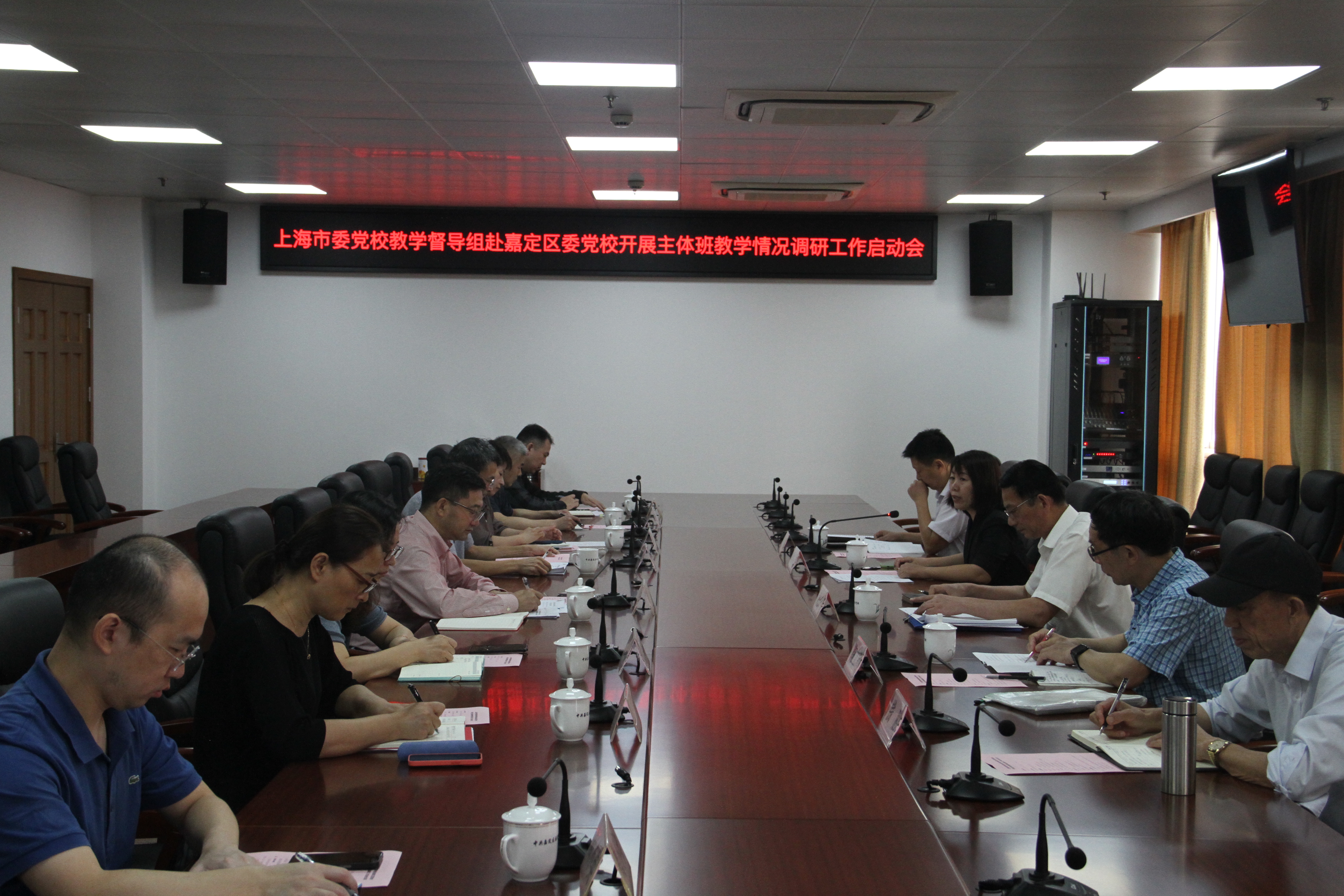 本网讯 9月15日上午,市委党校教学督导组赴嘉定区委党校召开主体班教学情况调研工作启动会。市委党校副校长谢根华出席并作总结讲话。嘉定区委党校常务副校长赵俊明出席会议并作表态讲话。市委党校教学督导组组长鞠立新介绍此次教学调研的实施方案。嘉定区委党校副校长夏侯建球作教学管理工作情况汇报。市委党校调研督查处处长薄其君主持会议。嘉定区委党校副校长赵晴出席会议。