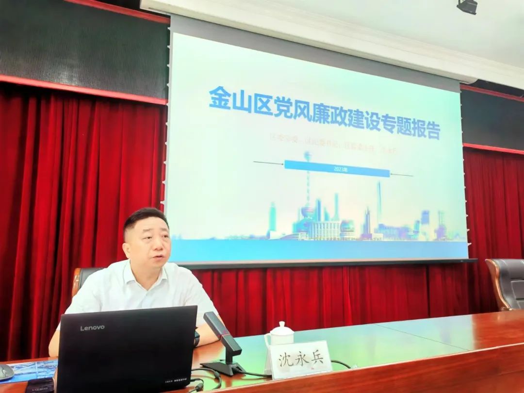 沈永兵以党的二十大报告对全面从严治党的工作要求入题,全面阐述了纪委监委工作的主要职责,结合大量详实鲜活的典型案例,深入分析了当前金山区党风廉政建设和反腐败工作的形势,为学员们上了一堂深刻的政策辅导课、作风转变课和思想升华课。沈永兵对年轻干部提出三点期望:一要做对党忠诚的明白人。要把对党忠诚内化于心、外化于行,自觉在思想上政治上行动上同党中央保持高度一致,切实践行党的宗旨,全心全意为人民服务。二要做廉洁自律的垂范者。要自觉做到遵规守纪、作风优良,用实际行动扣紧廉洁扣子,把守防微杜渐的关口,才能在“三个湾区”建设的征程中走得远、走得稳、走得快。三要做勇于担当的实干家。要勇于担责,在机遇面前主动出击,在困难面前迎难而上,在风险面前积极应对;要敢于斗争,在持续斗争中不断自我净化、自我完善、自我革新、自我提高;要胸怀未来,立足职责使命,多做打基础、利长远的事情,展现新时代党员干部的新气象新作为。