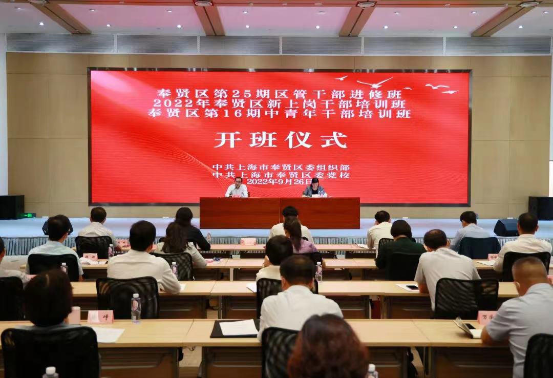 本网讯 9月26日上午,奉贤区第25期区管干部进修班、2022年新上岗干部培训班和第16期中青年干部培训班在区委党校集中开班。奉贤区委书记李政作开班动员,区委常委、组织部部长、区委党校校长徐乃毅主持。