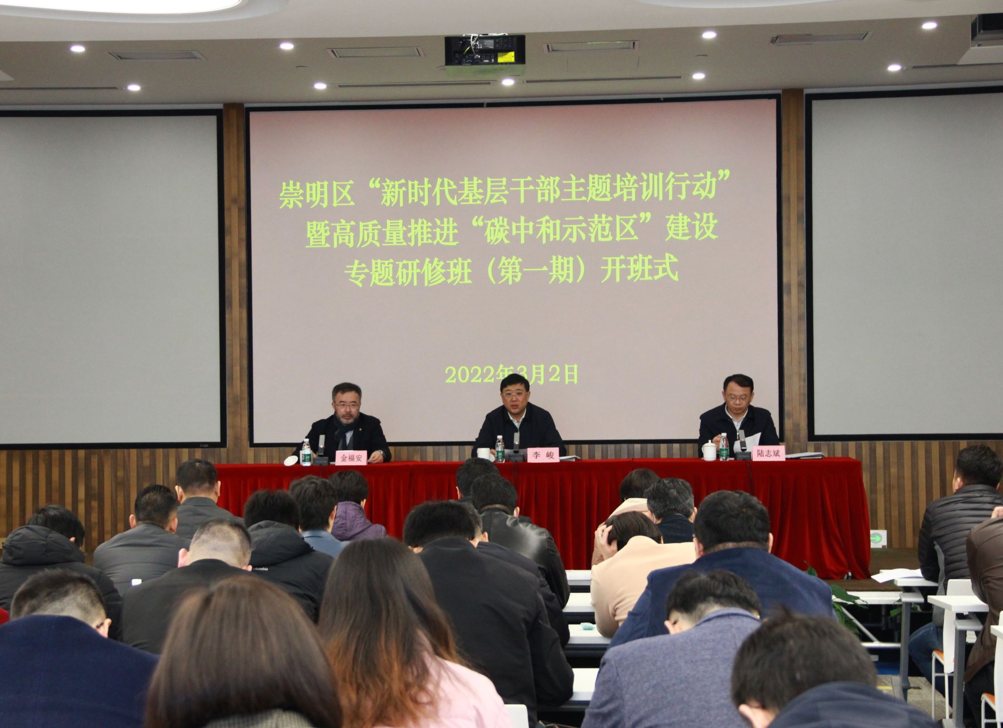 本网讯 为进一步深入学习党中央、国务院关于“碳达峰碳中和”的重大决策部署,高质量推进崇明区“碳中和示范区”建设,3月2日至4日,崇明区“新时代基层干部主题培训行动”暨高质量推进“碳中和示范区”建设专题研修班(第一期)在同济大学碳中和学院成功举办,来自崇明区各委办局、乡镇班子成员等60名学员参训。