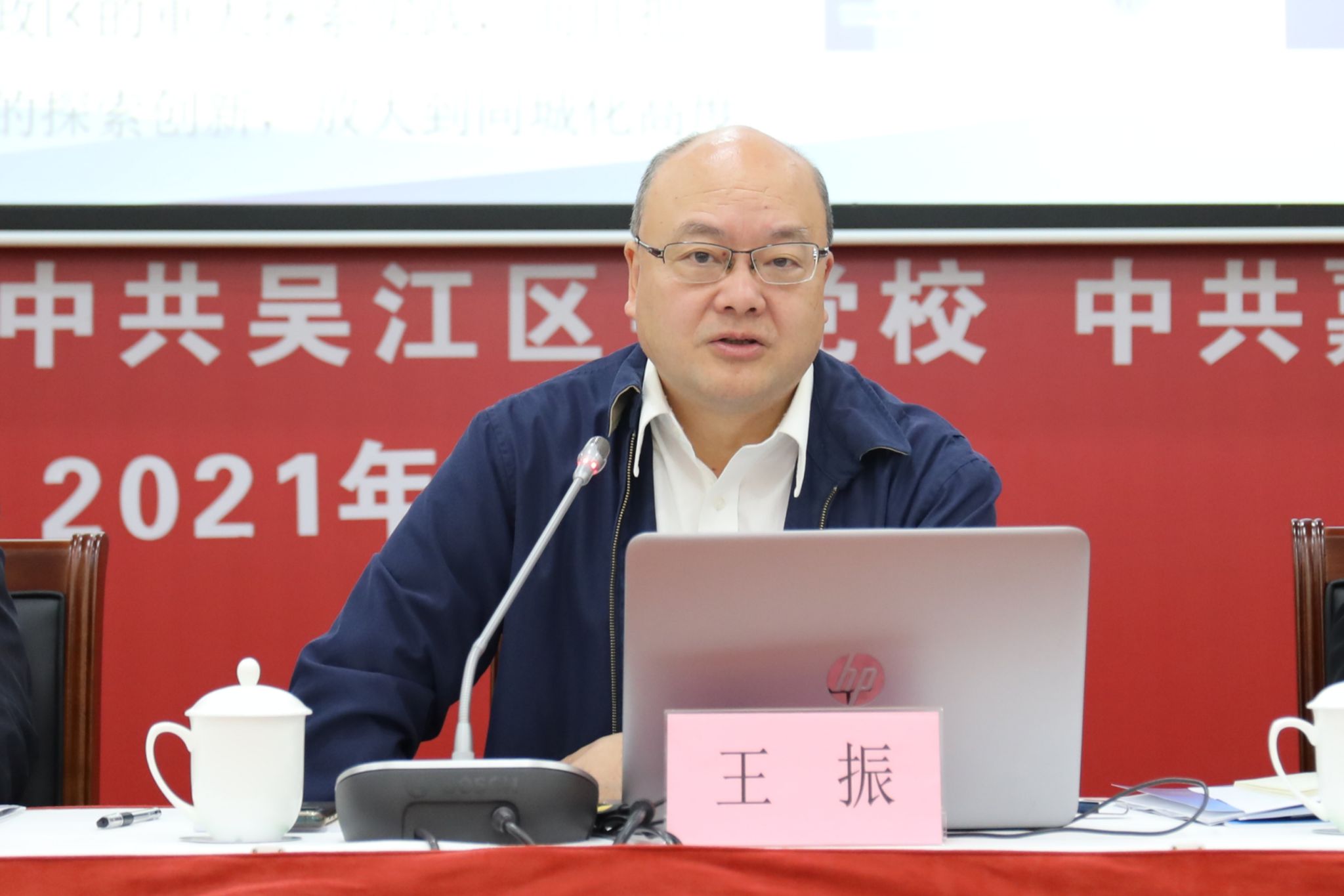 本网讯 为更好落实长三角一体化发展国家战略,促进长三角一体化的数字赋能、联动发展、共建共享,10月28日上午,上海市委党校经济学教研部、青浦区委党校、吴江区委党校、嘉善县委党校联合举办数字赋能长三角一体化高质量发展研讨会暨上海市党校系统经济学年会。上海市委党校副校长谢根华出席并讲话,上海社科院副院长王振研究员作主旨演讲,长三角示范区三地党校常务副校长致辞,经济学教研部主任唐珏岚教授主持。