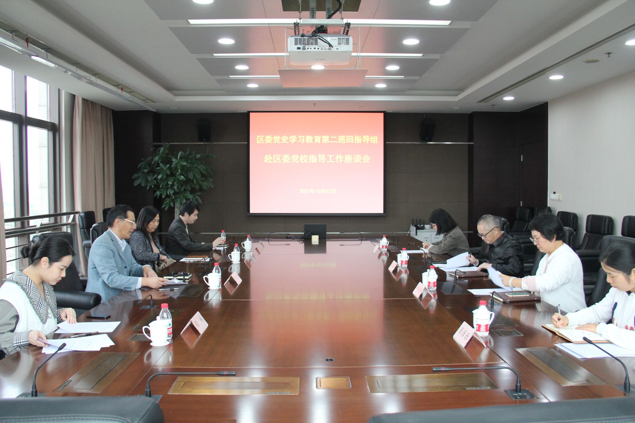 本网讯 10月22日下午,浦东新区区委党史学习教育第二巡回指导组副组长黄新龙、王振华一行4人赴浦东新区区委党校开展巡回指导。区委党校副校长张武君出席座谈会并作工作汇报,区委党校党史学习教育领导小组办公室成员参加座谈会。