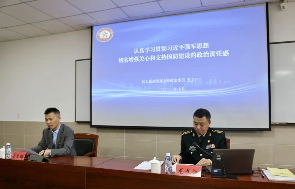 龙文江围绕习近平强军思想的主要内容、时代背景和实践结果,全面认识深化国防和军队改革取得的历史性成就,各级党政领导干部关心和支持国防建设的重点等三个方面,深刻阐述新时代国防和军队建设,切实增强年轻干部关心和支持国防建设的政治责任感。