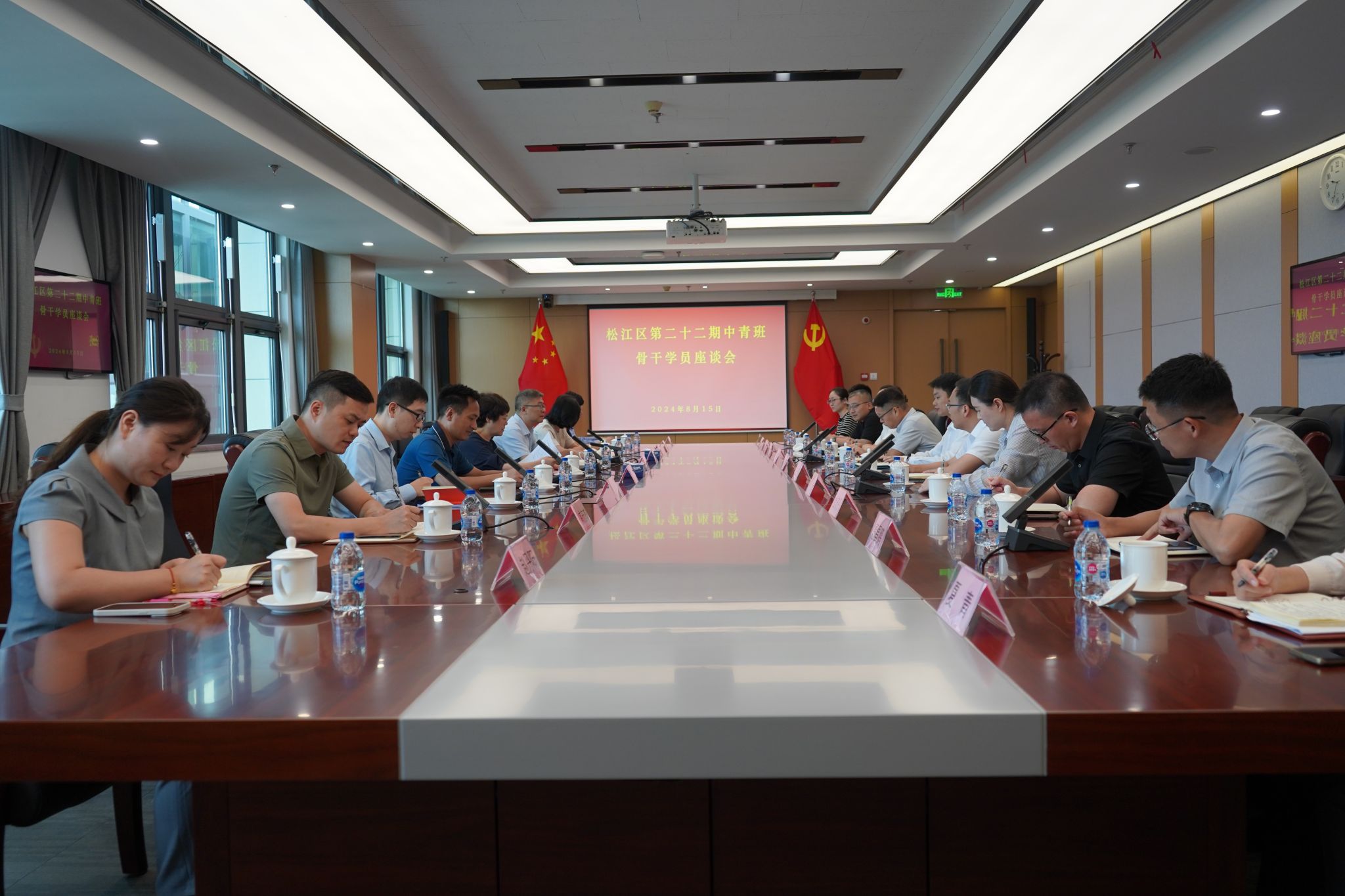 为了进一步加强入学教育、高质量举办第二十二期中青年干部培训班,8月15日,松江区委党校召开骨干学员座谈会。松江区委组织部副部长、区公务员局局长、二级巡视员顾静华,区委党校常务副校长刘凤强,培训班联络员、九亭镇二级调研员卫林出席座谈会。会议由区委党校副校长荀宁军主持。