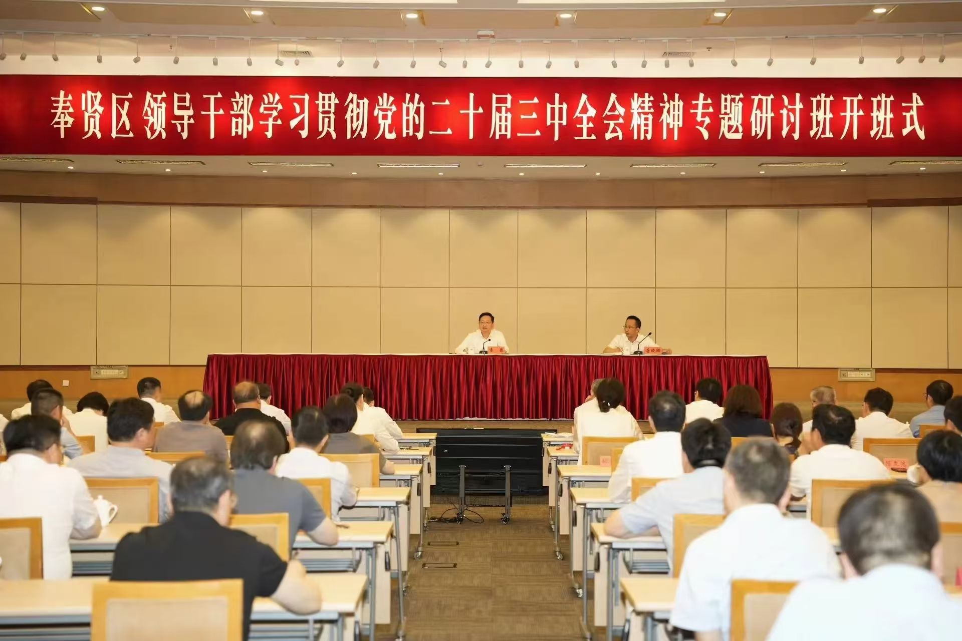 8月30日下午,奉贤区举行领导干部学习贯彻党的二十届三中全会精神专题研讨班开班式暨区委党校(区行政学院)2024年秋季学期开学典礼。奉贤区委书记袁泉强调,要深刻领会党的二十届三中全会的划时代意义,深刻领会进一步全面深化改革的目标要求、重大原则、重大举措、价值取向、根本保证,深刻领会十二届市委五次全会精神,紧密结合奉贤实践,有力有效推动全会精神落地落实。奉贤区委副书记唐晓腾主持会议。