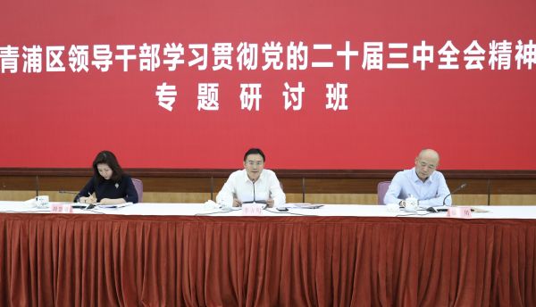 本期研讨班为期3天,青浦区属各部门、单位负责人共118人参加培训。培训期间,学员们不仅聆听了“党的二十届三中全会精神专题报告”“以经济体制改革为牵引推动高质量发展”“推进国家安全体系和能力现代化”“数据与数据安全”等专题课,还结合学习和工作实际,围绕“如何深入学习贯彻党的二十届三中全会精神”主题开展了分组研讨。大家表示,要不断巩固学习成果,把党的二十届三中全会确定的各项改革任务措施学深悟透、融会贯通,更好地将市委、区委的各项决策部署落到实处,团结奋斗,锐意进取,投身青浦改革的新实践,将学习内容转化为今后推动各项工作的动力和成效,以实际行动助力青浦高质量发展。