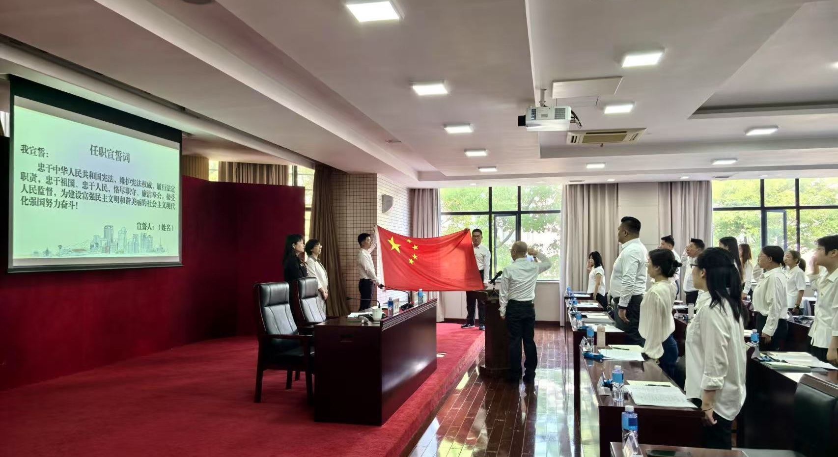 开班式上,50名科级干部进行了庄严的任职宣誓。全体学员面向国旗肃立,以铿锵之声作出庄严承诺。