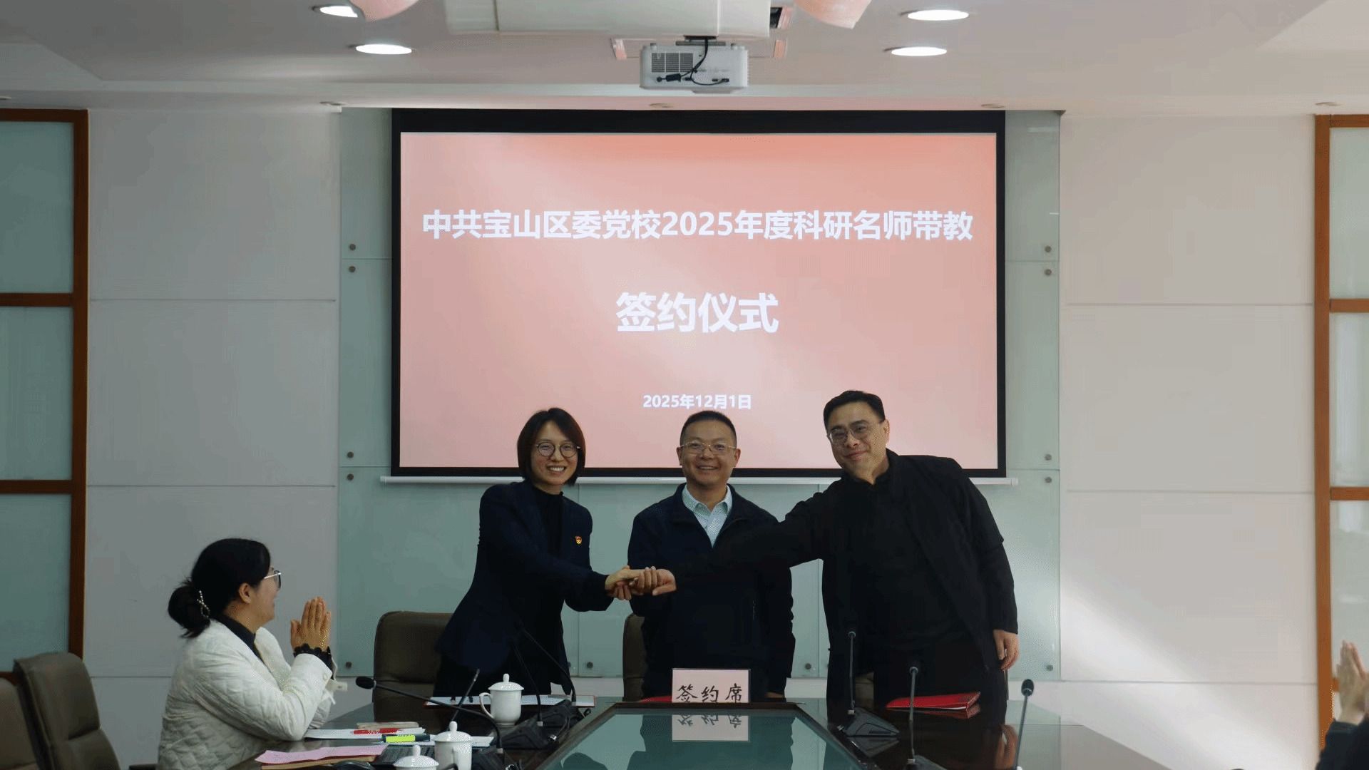 为进一步深化党校科研是基础认知,强化有组织科研整体优势,推动区级党校科研人才培养工程,12月1日上午,宝山区委党校举行科研名师带教签约仪式。常务副校长张淑红出席并讲话,副校长陈明敏主持活动。全体教师参加。