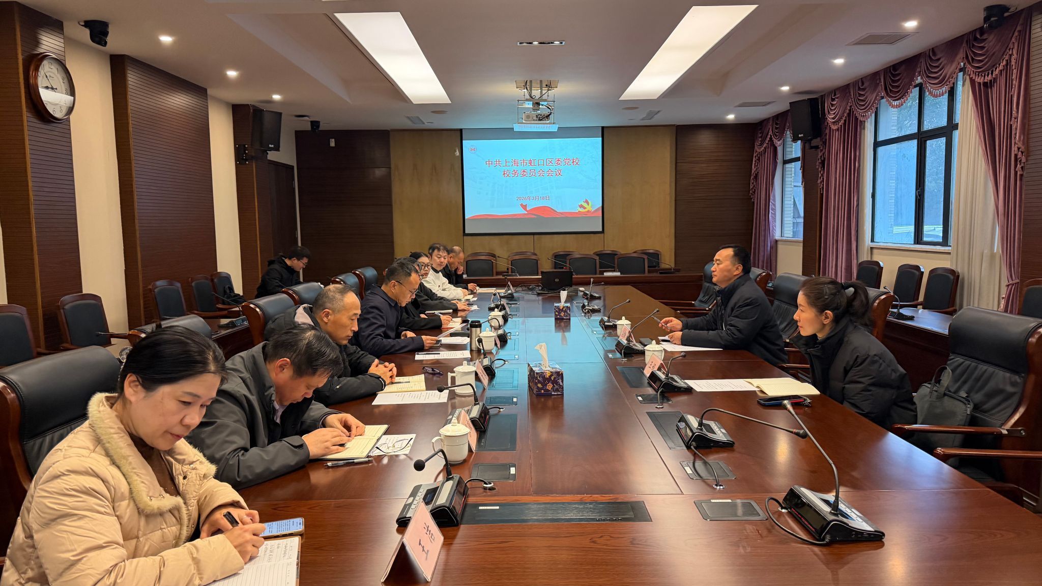 3月18日上午,虹口区委党校召开校务委员会会议。区委副书记、区委党校校长姜爱锋出席,并提出工作要求。常务副校长温美平主持会议。