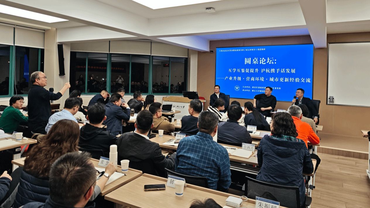 交流研讨互鉴,拓宽工作思路。通过多元研讨形式,组织两地干部互学互鉴、交流碰撞,共同探讨区域发展的有效路径。围绕“产业升级·营商环境·城市更新”主题,杭州经信、基层治理等条线领导与学员开展圆桌论坛对话交流,沪杭干部分享区域发展经验,碰撞工作思路;聚焦党的二十届四中全会精神,开展政策理论分组讨论,引导学员把学习成果与服务嘉定高质量发展紧密结合,凝聚起服务大局、真抓实干的政治自觉和思想自觉。