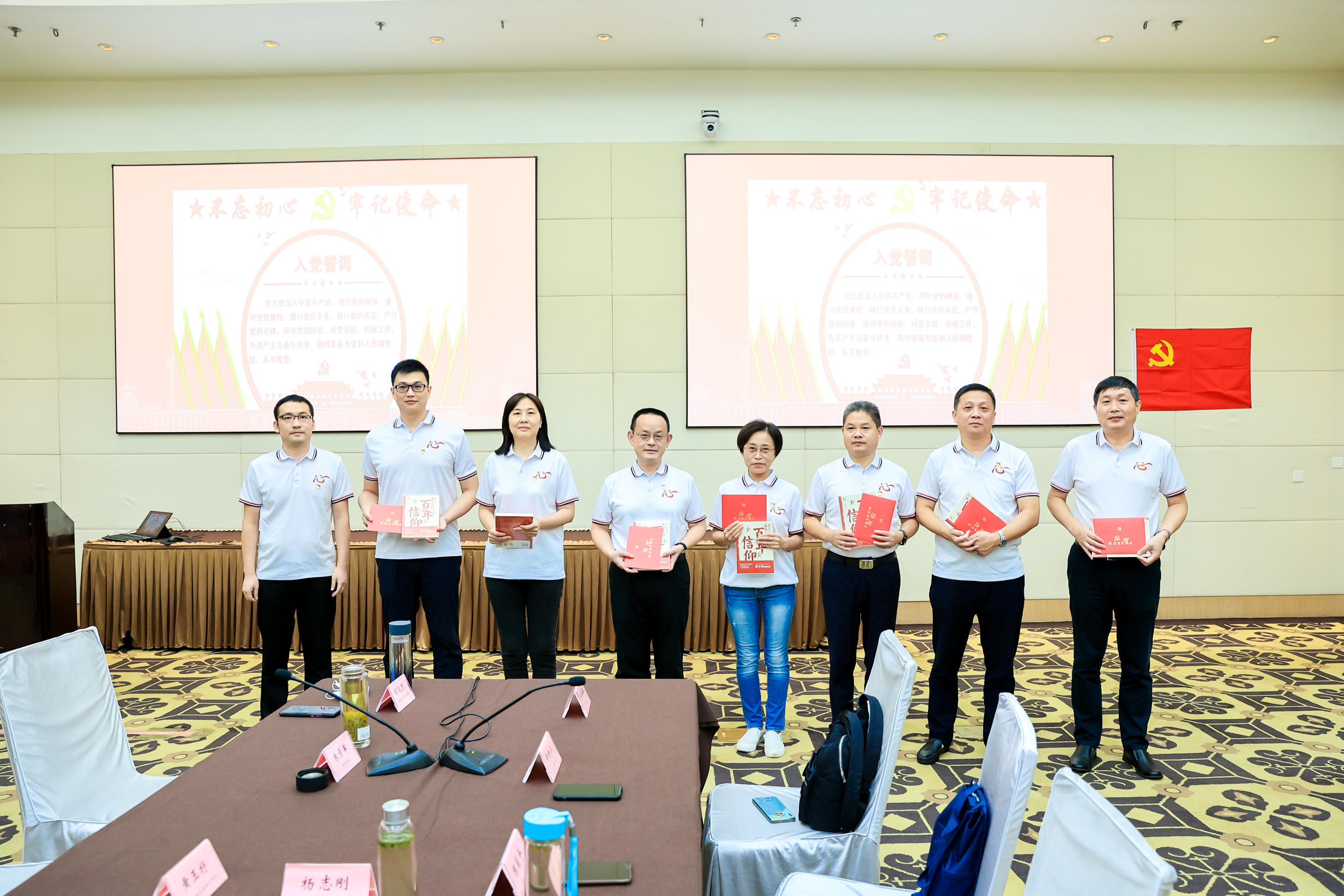 “我志愿加入中国共产党……”誓言声声映初心,百年礼赞心向党。第102期公务员任职班全体党员以“牢记初心使命,过好政治生日”为主题,集中为光荣在党三十年的5名老党员和8、10月入党的2名党员过政治生日,并以集体宣誓的方式,开展重温入党誓词活动。
