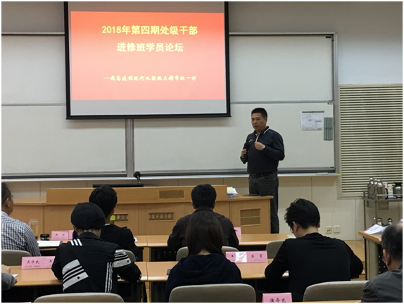 10月19日下午, 第4期处级干部进修班“我为建设现代化国际大都市献一计”主题学员论坛活动在海兴楼104教室举行。来自市机管局、市台办、市质监局、市农委的四位学员分别围绕提升上海精细化智能化管理水平、进一步做好对台工作、上海质量工作的发展与创新以及上海乡村振兴等作了主题发言。其他学员根据主讲人发言内容,联系工作实际,有的作了补充发言,有的以提问的方式,就相关主题深入讨论交流。活动现场气氛热烈,学员们争相发言、各抒己见。就推进城市精细化管理,学员们围绕城市管理的演进、智能化技术在城市管理中的作用及其可能带来的新问题以及城市安全管理等进行了讨论交流。就对台工作,在主题发言对当前台湾、对台工作现状做一些介绍的基础上,通过问答环节,大家对在新形势下如何更好发挥上海在促进两岸关系和平发展中的作用、当好中央对台工作的排头兵有了清晰的认识。就上海质量工作,主题发言对其发展历史、现状及趋势做了介绍,提出了质量创新、质量供给、技术基础、质量品牌等方面存在的一些问题,引发了大家的思考。对于乡村振兴,围绕上海如何贯彻执行这项国家战略、建设上海都市现代绿色农业、美丽乡村建设,学员们或结合自身相关工作,或联系自己到乡村探亲、旅行所感,就目前农村现状、发展规划及执行、环境治理、特色农产品及农村生态的“包装”宣传、城乡融合、农村品牌意识等进行了热烈讨论,甚至就有些观点进行“交锋”……