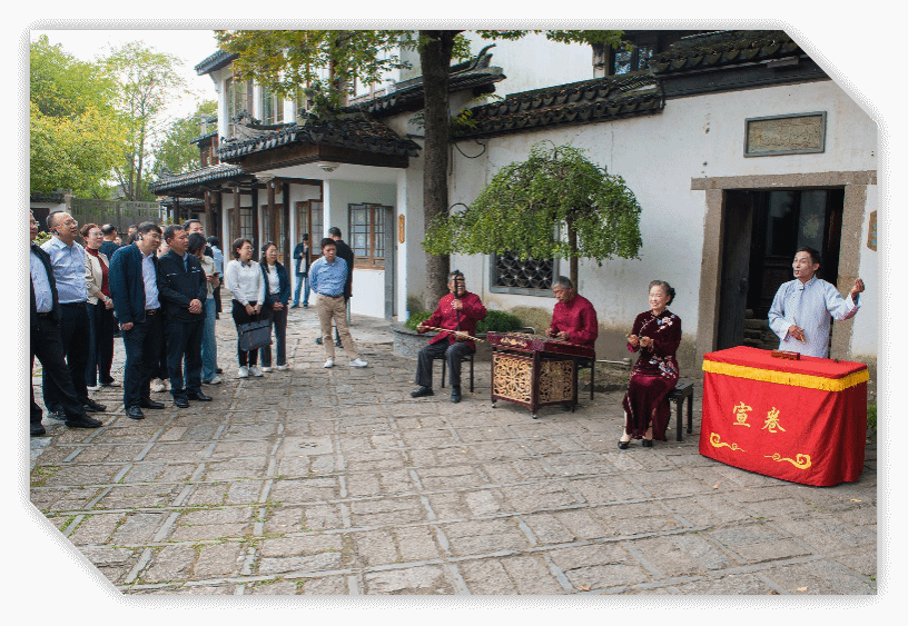 江南自古多水乡。淀山湖畔的千年古镇金泽,因现存宋、元、明、清四朝七座古桥而被誉为“古桥博物馆”“江南桥乡”。其中,始建于元朝的迎祥桥,青砖、水磨方砖、楠木、青石混合结构的五跨桥,被当代桥梁专家称作“连续简支梁桥”的鼻祖。安身于桥堍湖畔、默默传承中华优良工艺的金泽工艺社,用吴侬软语传唱民间真善美故事的非遗艺术形式“宣卷”,无不让人体味到江南文化的魅力和文化的创新传承。