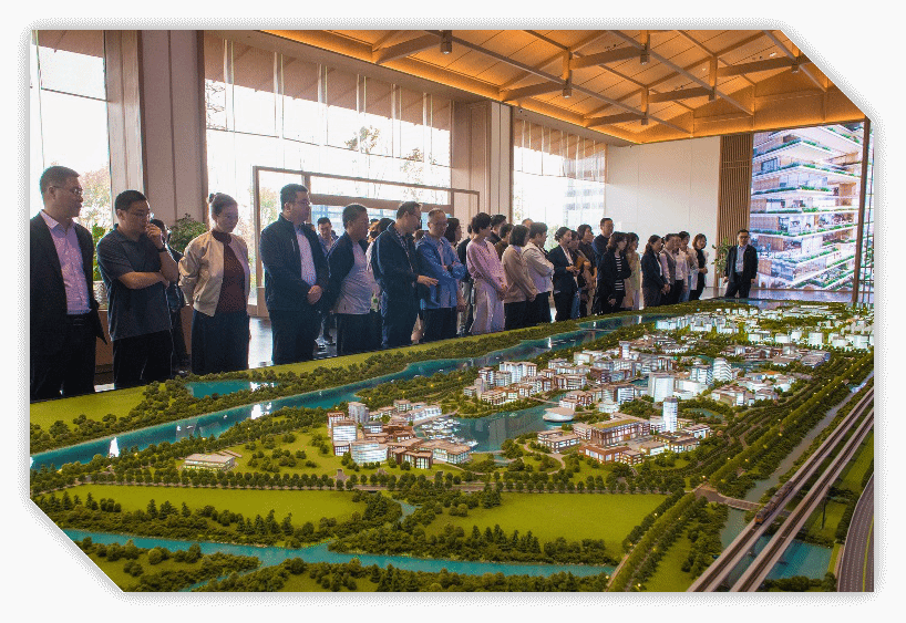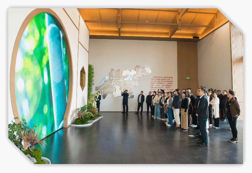 水乡今朝多智岛。2024年是长三角一体化示范区建设五周年,是示范区进入形态开发和功能塑造并重新阶段的关键一年。经过五年的布局和建设,以西岑科创中心为代表,一个世界级科创小镇的雏形,在示范区青浦片区呼之欲出。充满江南文化风韵的西岑科创中心展示馆,让大家预览西岑的未来,了解这片土地致于推进示范区将绿水青山转化为金山银山的实践进行时。位于西岑的华为练秋湖研发中心,占地2400亩,是华为全球最大的研发基地,将吸纳近4万名研发人才和全球上千名顶尖科学家入驻。搭乘研发中心刚刚部分启用的小火车,学员们已经能感受到浓郁的创新氛围——愈奋进,愈江南!