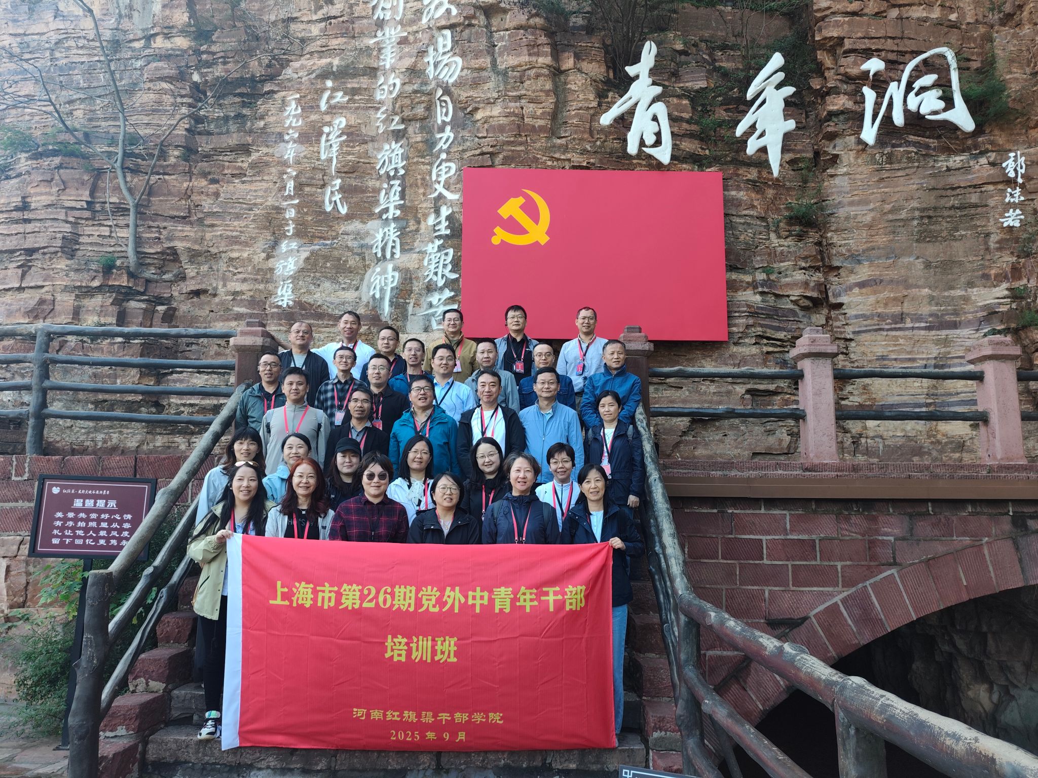 9月22日至26日,上海市委党校第26期党外中青年干部培训班走进河南红旗渠干部学院,以“课堂解码、实地寻迹、对话共情”模式开启了一场“精神寻根”现场教学。学员们在“行走中感悟、思考中升华”,全方位探寻红旗渠工程背后的坚韧品格与实干智慧,深刻理解“自力更生、艰苦创业、团结协作、无私奉献”的红旗渠精神内核。