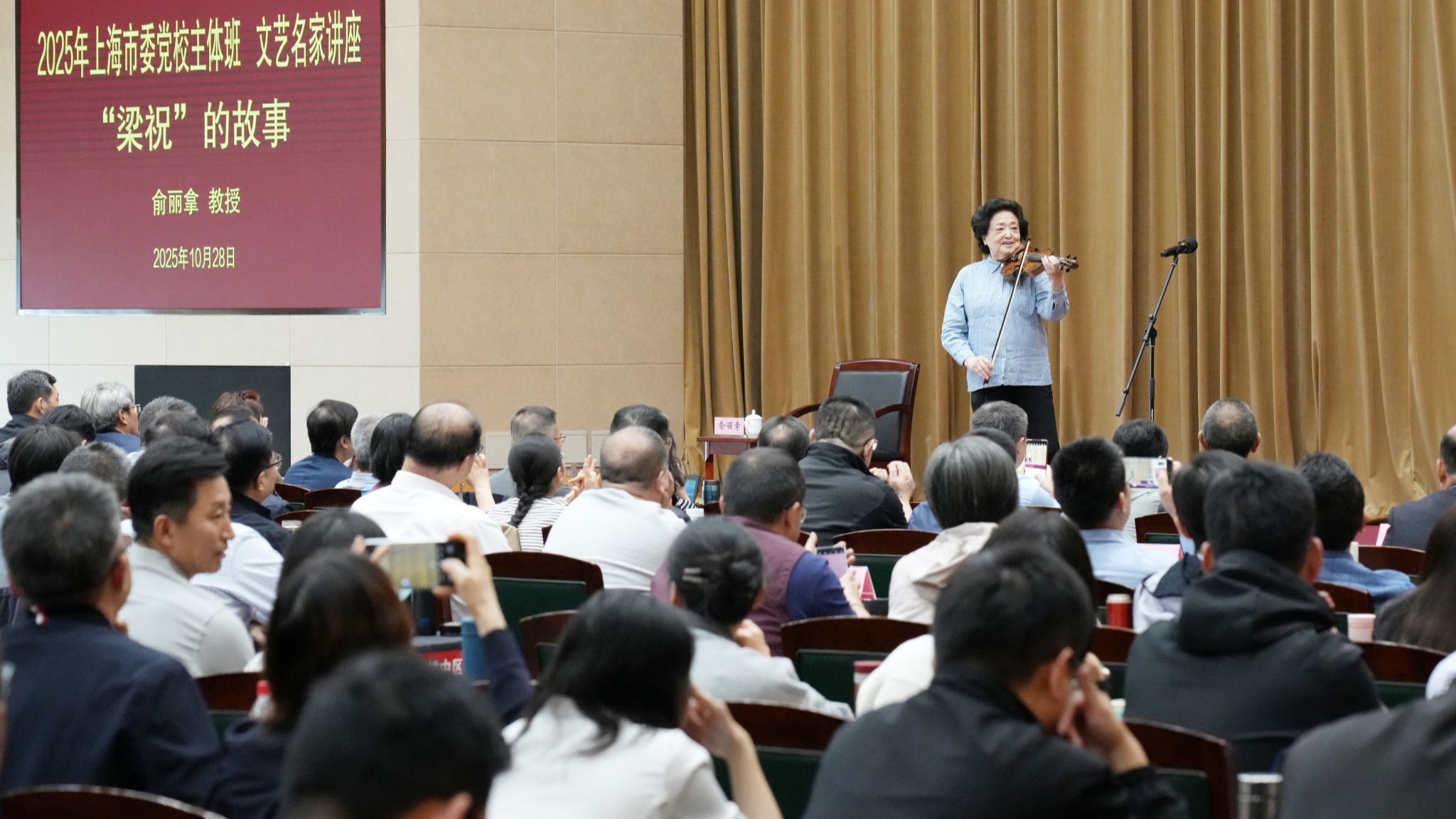 整场讲座历时两个小时。俞教授重点对《梁祝》的创作过程、演绎思路以及文化影响进行讲解。学员们表示,此次讲座不仅加深了大家对《梁祝》这部艺术经典的理解,更被俞丽拿教授坚守教育教学一线的情怀以及坚定文化自信、赓续民族文脉的使命担当深深感动。