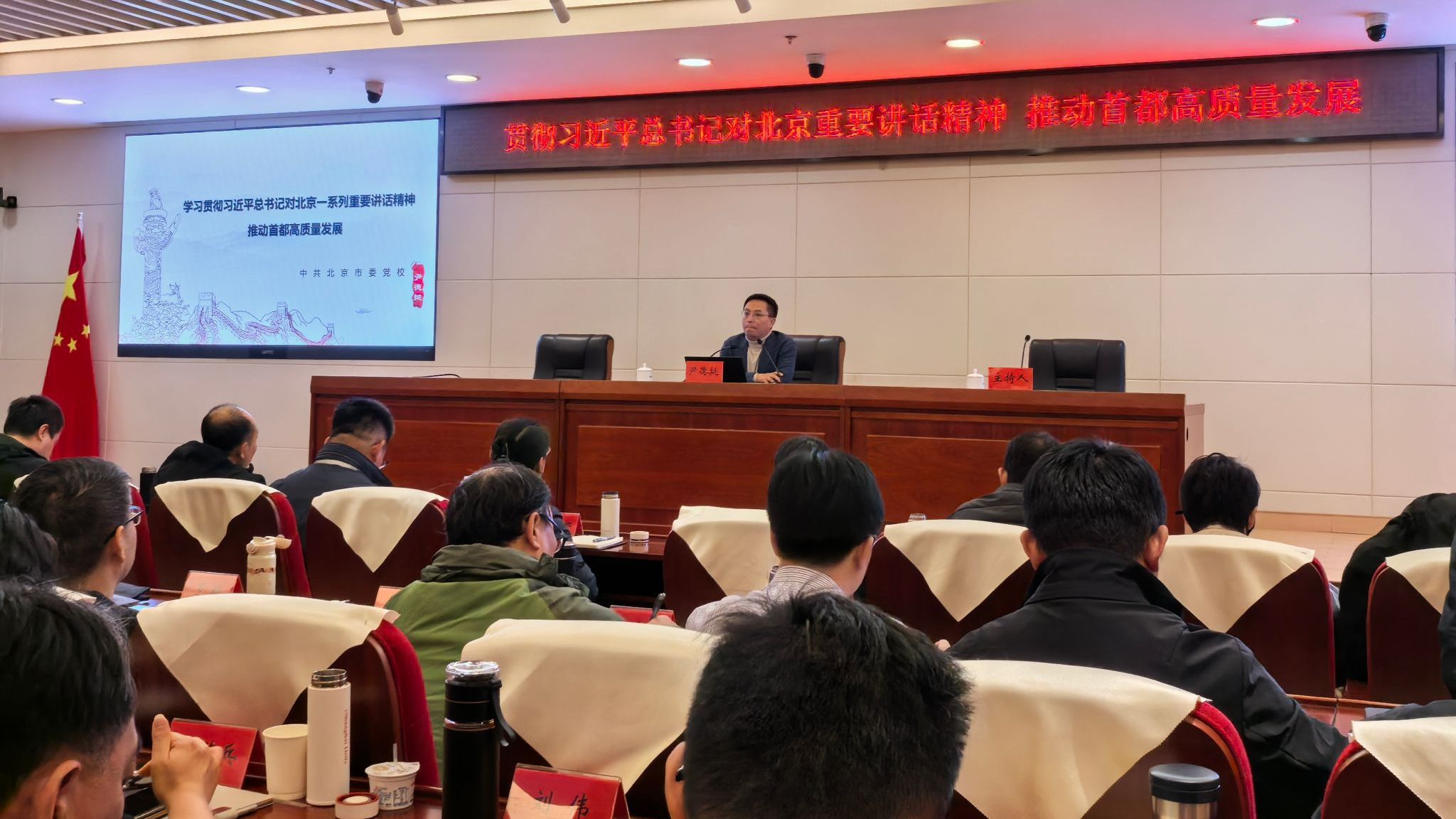 在京期间,学员们还聆听了北京市委党校副校长尹德挺教授关于《贯彻习近平总书记北京重要讲话精神 推动首都高质量发展》的专题授课,以及北京市委党校法学教研部讲师李兴博士关于《推进基层治理现代化—北京接诉即办改革及启示》的案例教学,并走进“京华实践主题教室”。这个沉浸式课堂集教、研、展于一体,以“建设一个什么样的首都,怎样建设首都”为主线,按“金句+例证+成效”的逻辑展陈,集中反映了习近平新时代中国特色社会主义思想在京华大地落地生根,是学习党的创新理论的重要阵地。