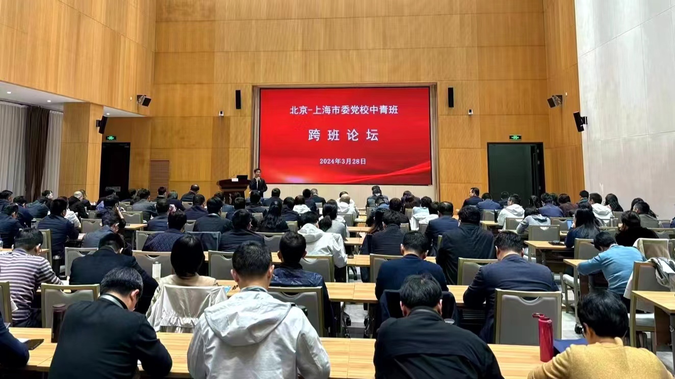 本网讯 3月28日晚,上海市委党校第65期中青班61名学员与来沪学习调研的北京市委党校第66期中青班58名学员汇聚一堂,围绕认真学习习近平新时代中国特色社会主义思想,聚焦超大城市治理现代化、推动城市高质量发展的经验与举措开展交流互鉴。北京市委党校教务处处长吕廷君,上海市委党校教务处处长赵勇,北京、上海市委组织部、市委党校相关处室负责人出席论坛。论坛由上海市委党校第65期中青班学员许可主持。