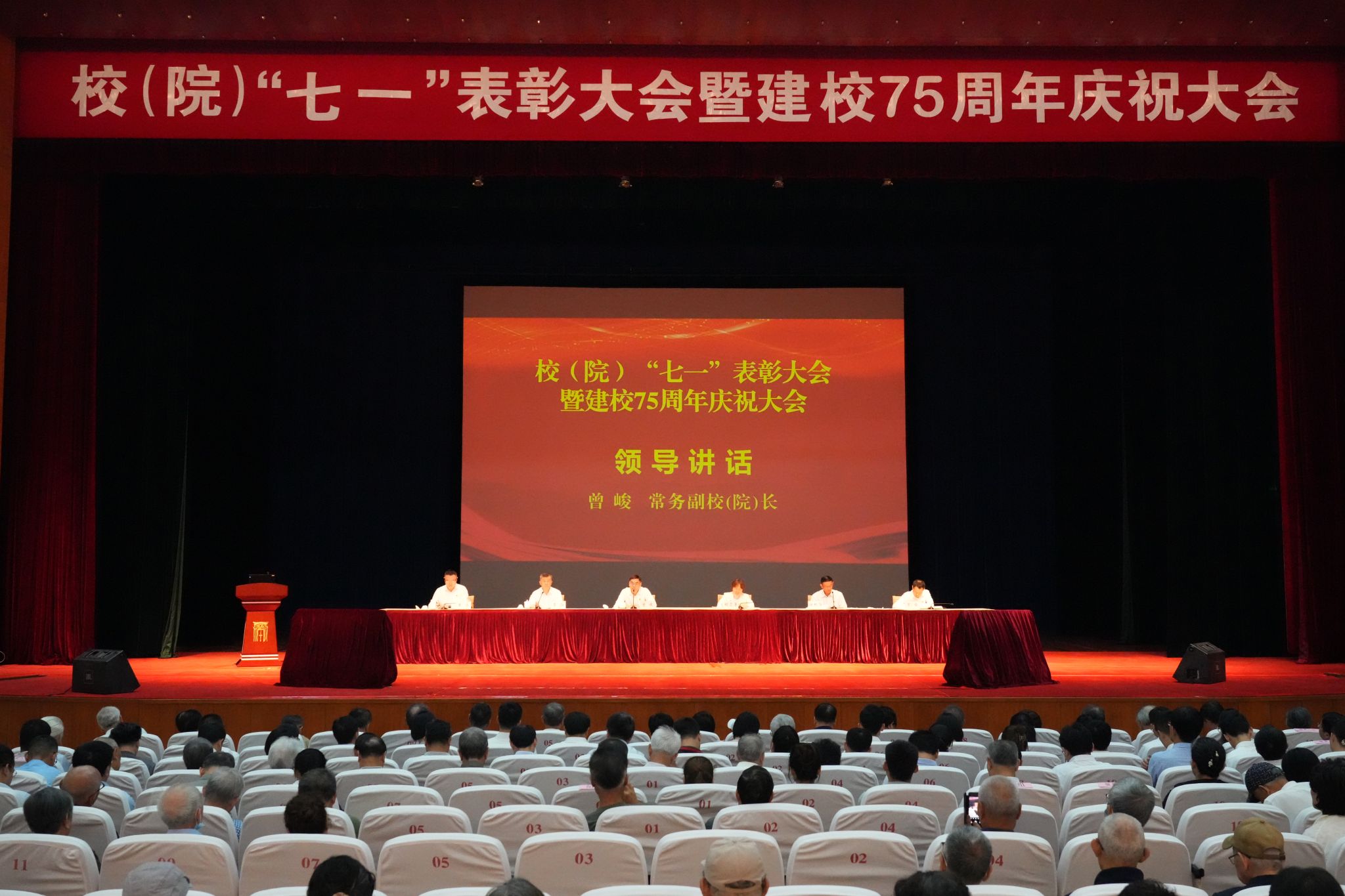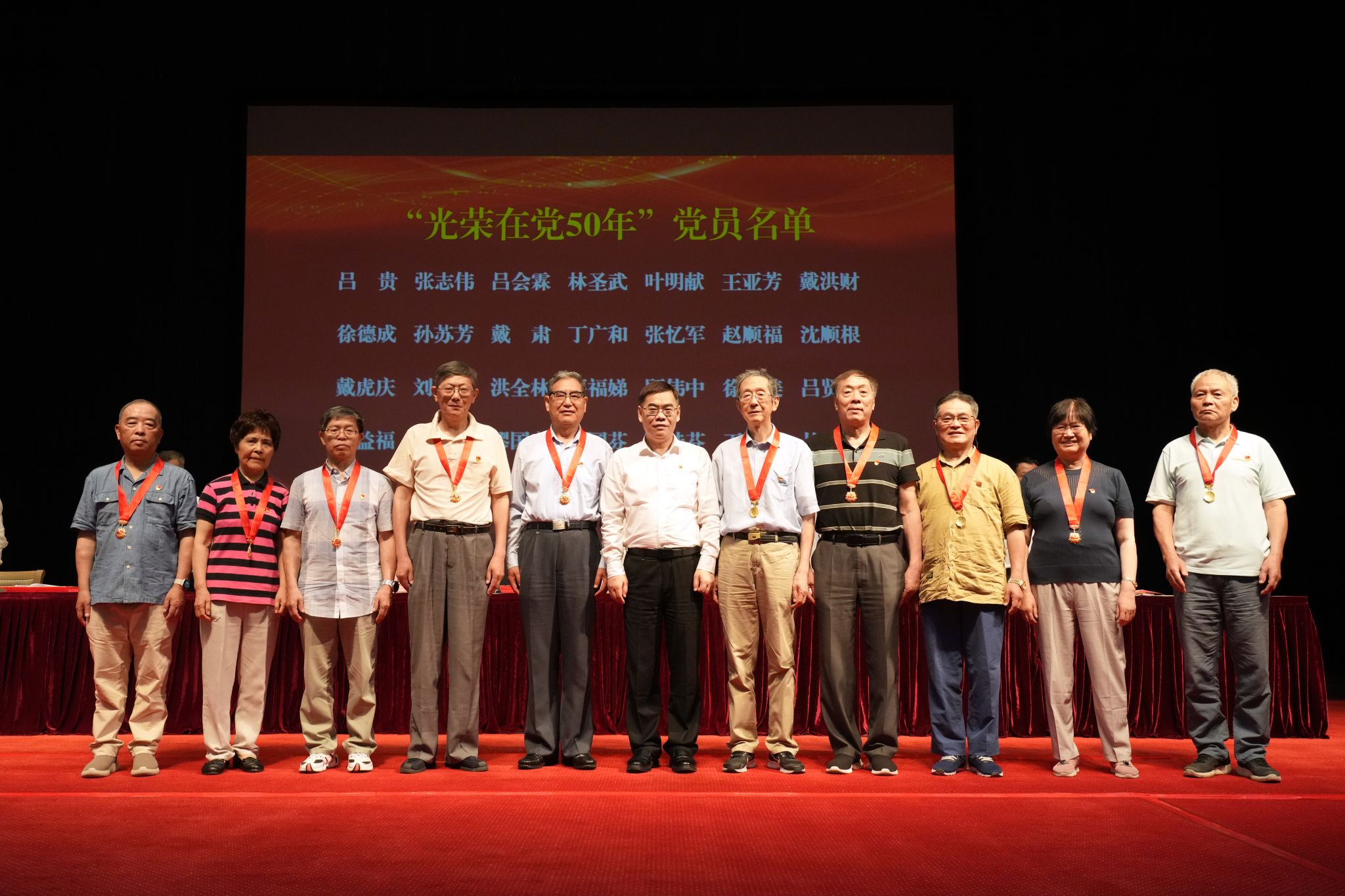 会议在全场齐唱国歌声中拉开帷幕。曾峻为“光荣在党50年”的老同志们佩戴纪念章。校委会成员和胡霞菁为获得“上海市模范机关建设先进单位(处室)”、上海市市级机关“两优一先”、校(院)“两优一先”以及庆祝建校75周年主题征文一等奖等荣誉的集体和个人颁发证书。“光荣在党50年”代表吕会霖,获奖代表吴从环、董幼鸿、王瑶、陆怡清等同志作交流发言。