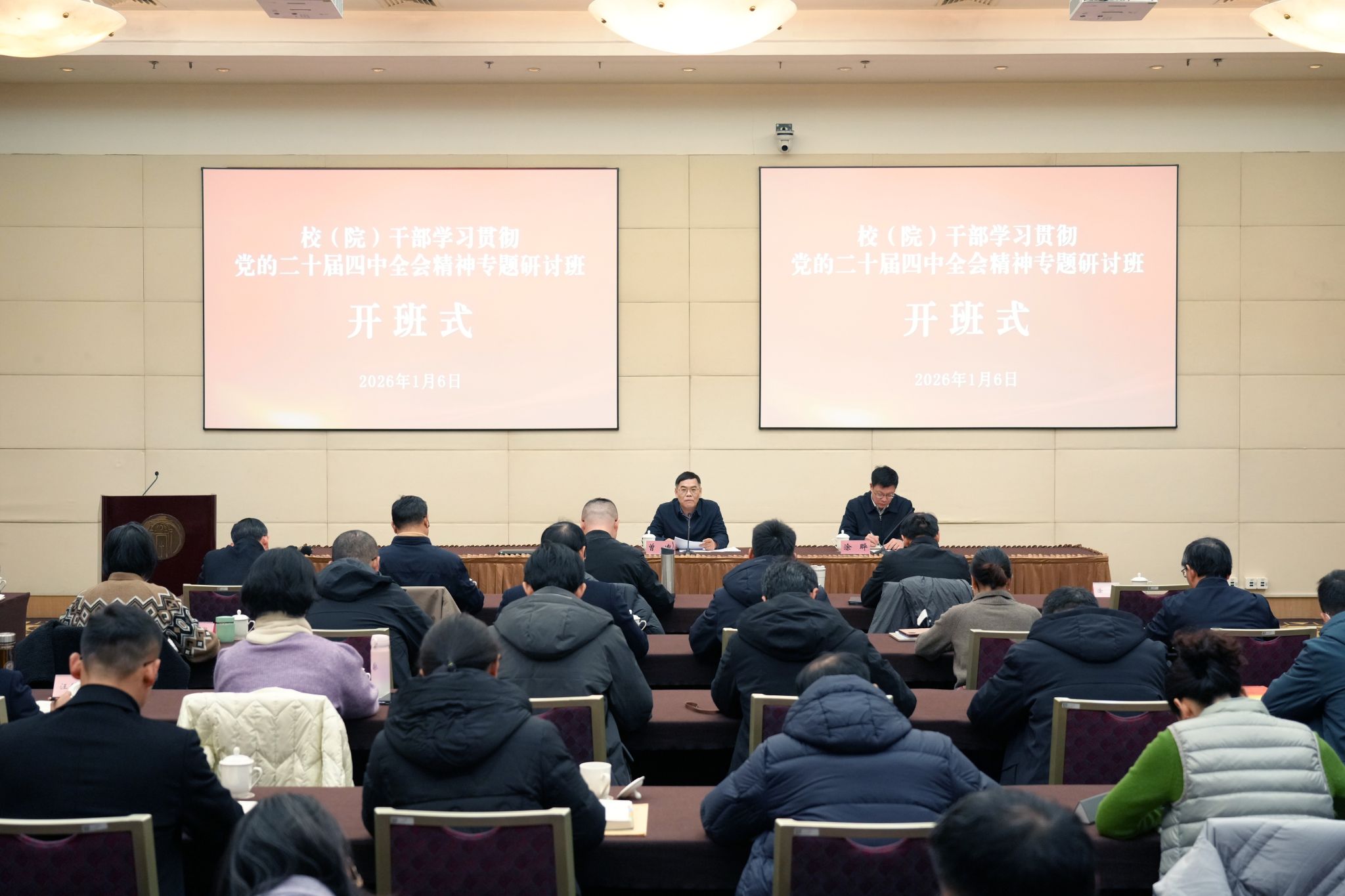 为深入学习贯彻党的二十届四中全会精神,全面落实市委部署要求,系统谋划党校“十五五”时期高质量发展,1月6日至8日,市委党校举办学习贯彻党的二十届四中全会精神专题研讨班。常务副校长曾峻出席开班式并讲话。全体校委委员、二级巡视员、部门负责人及参公管理部门四级调研员及以上干部参加学习。